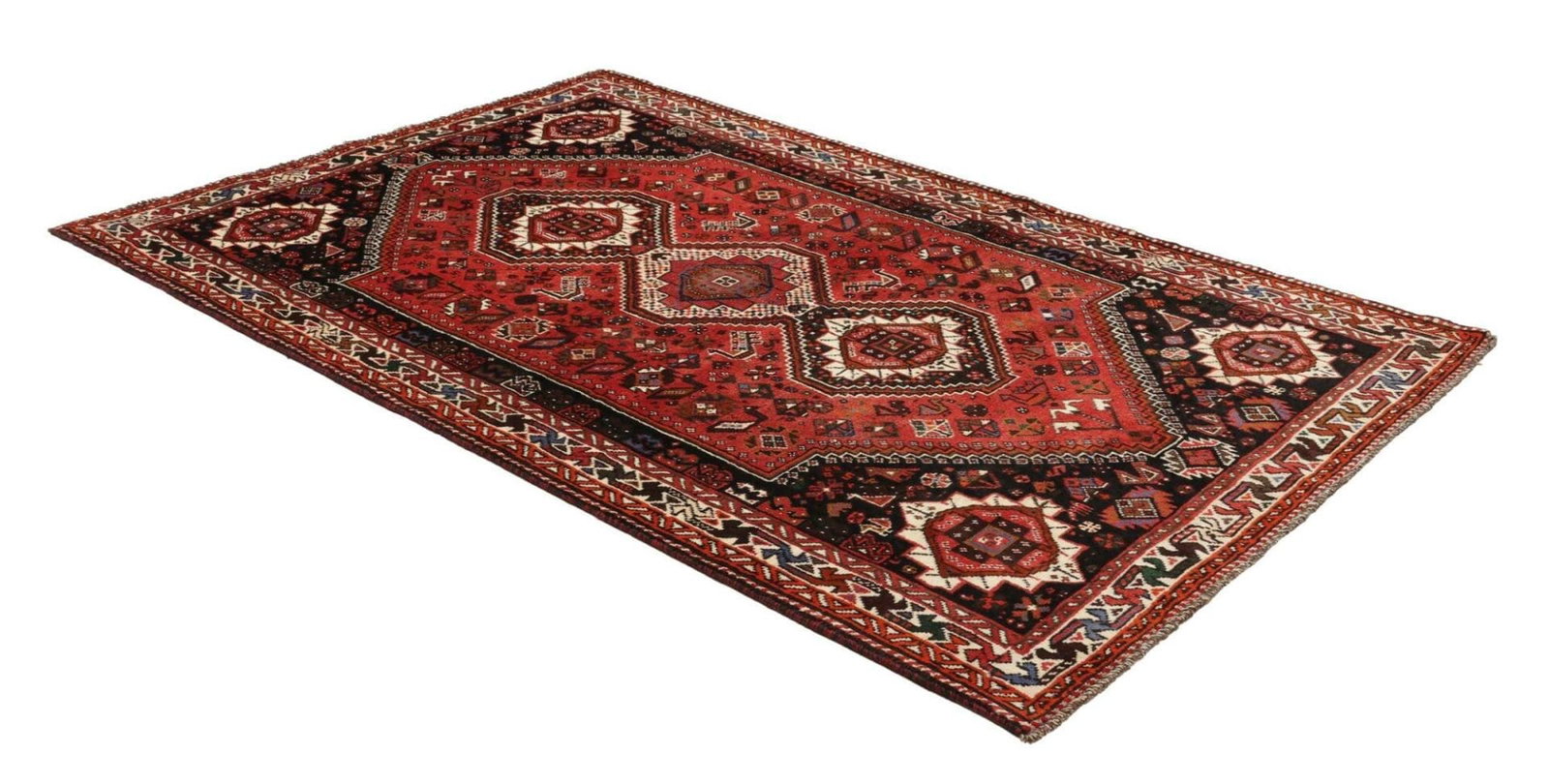 Shiraz Teppich | Knotendichte: ca. 200.000 Knoten/m² | Material: 100% Schurwolle | Größe: 175×262 cm | Zustand: Handgeknüpft | Herkunft: Iran | Florhöhe: ca. 7-10mm | Kette: 100% Baumwolle | Geometrisches Muster