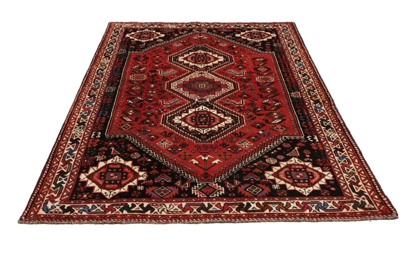 (Verkauft) Shiraz Teppich 175 x 262cm, geometrisches Muster, handgeknüpft