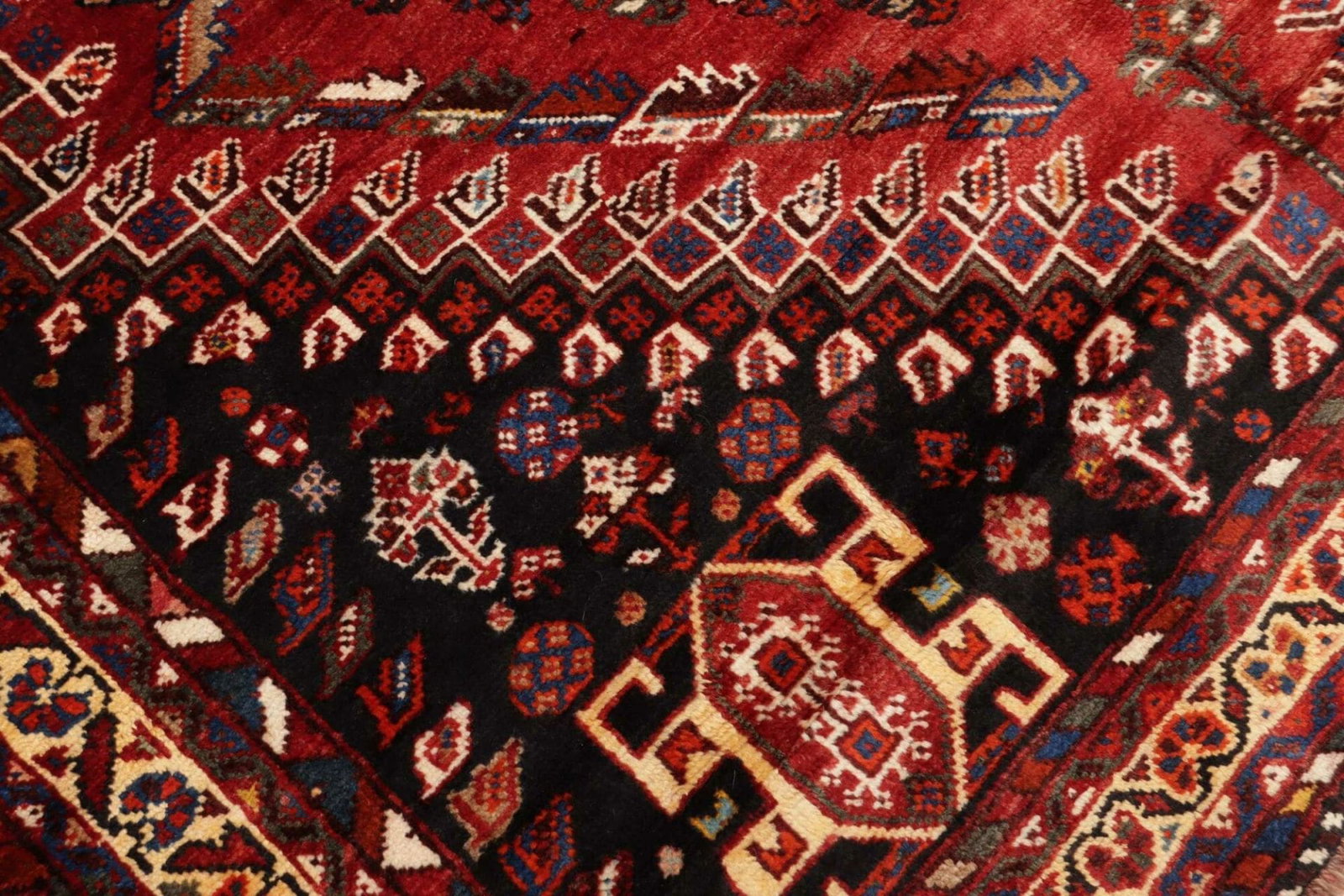 Der Shiraz Teppich stammt aus der gleichnamigen Region in Iran, die berühmt ist für ihre reiche Teppichtradition. Shiraz ist eine Stadt voller Kultur und Geschichte, bekannt als das Zentrum für hochwertige handgeknüpfte Teppiche. Die Teppichknüpferei in Shiraz hat eine lange Tradition, die bis ins 16. Jahrhundert zurückreicht und heute noch mit derselben Leidenschaft und Hingabe fortgeführt wird. Die Teppiche aus dieser Region sind für ihre lebendigen Farben und traditionellen Muster bekannt, die oft symbolische Bedeutungen tragen und die Kultur der iranischen Bevölkerung widerspiegeln.