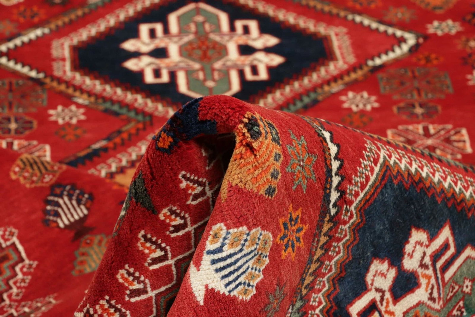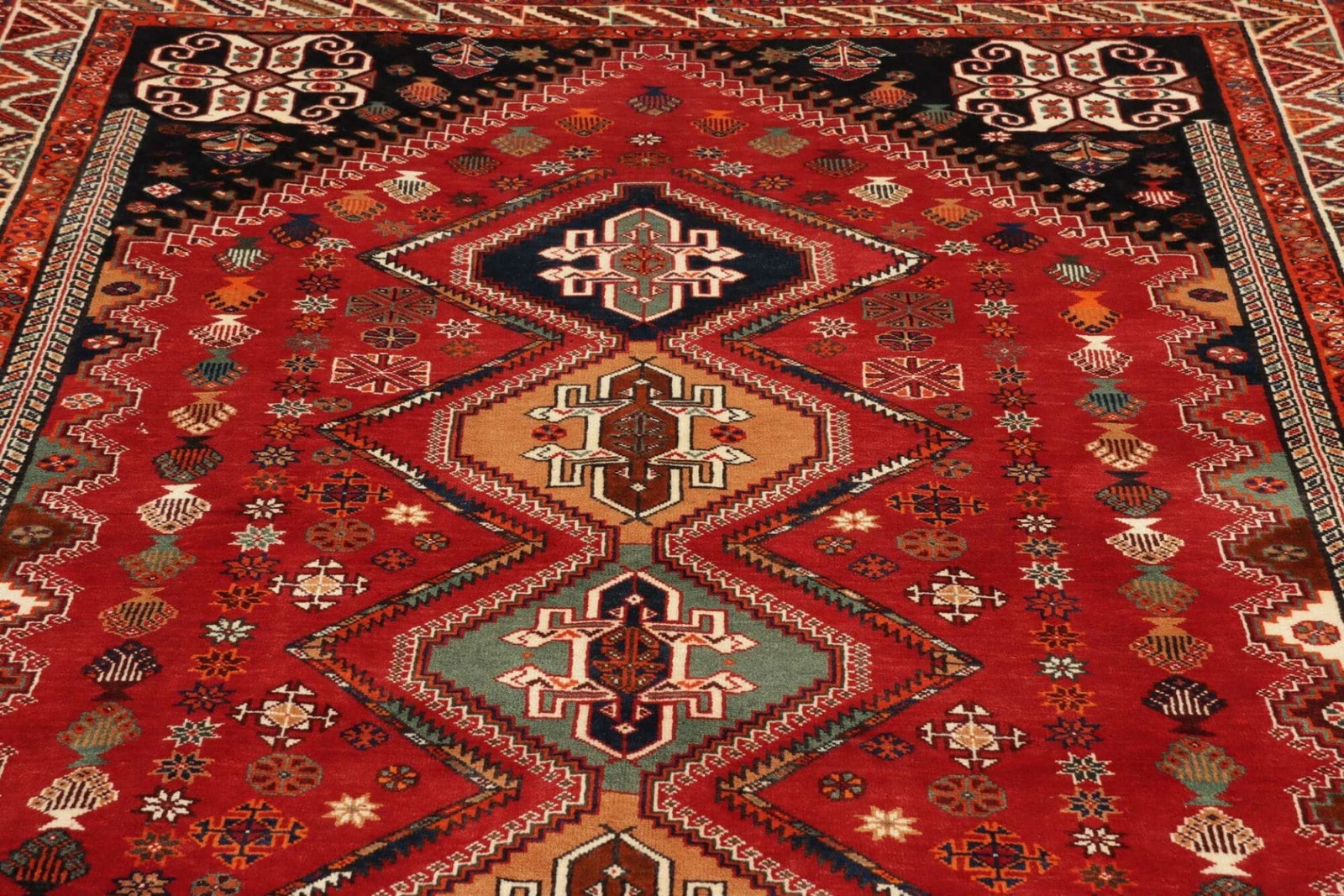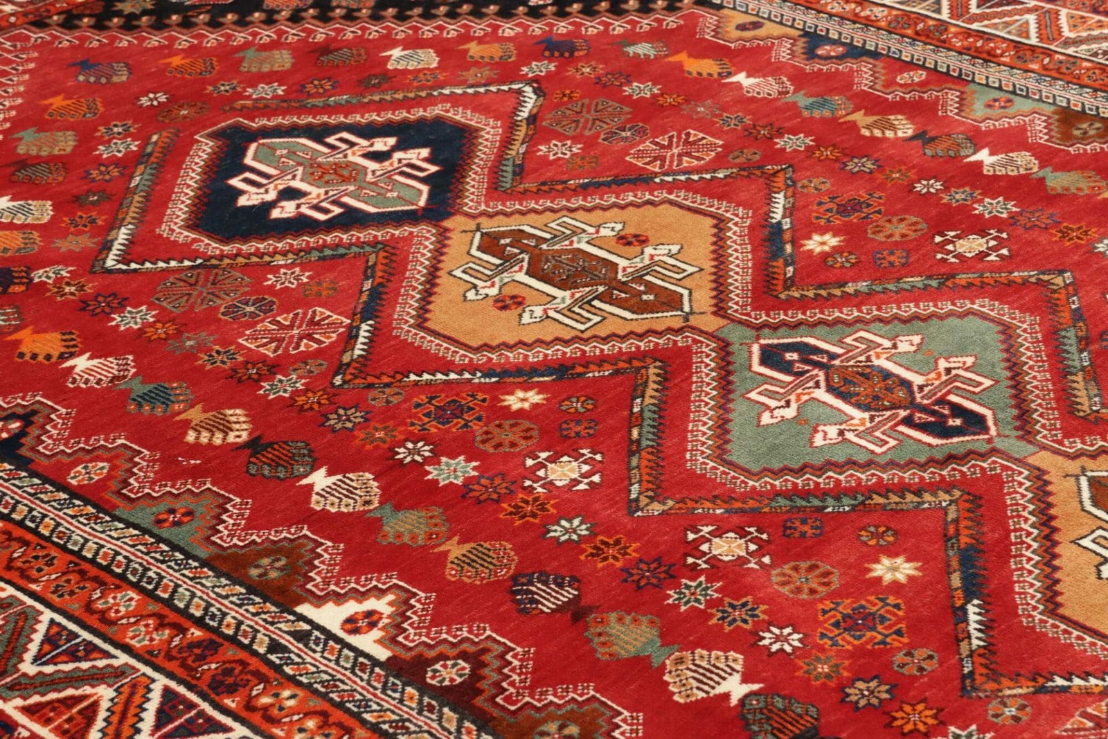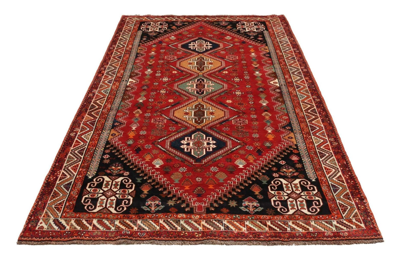 Shiraz Teppich | Größe: 181 x 270 cm | Knotendichte: ca. 200.000 Knoten/m² | Flor: 100% Schurwolle | Kette: 100% Baumwolle | Herkunft: Iran | Verarbeitung: Handgeknüpft | Zustand: Sehr gut, mit feinen geometrischen Mustern