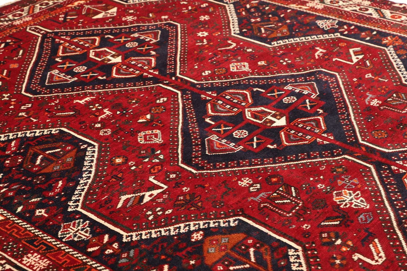 Shiraz Teppich 223 x 290cm, Wolle, geometrische Muster, handgeknüpft