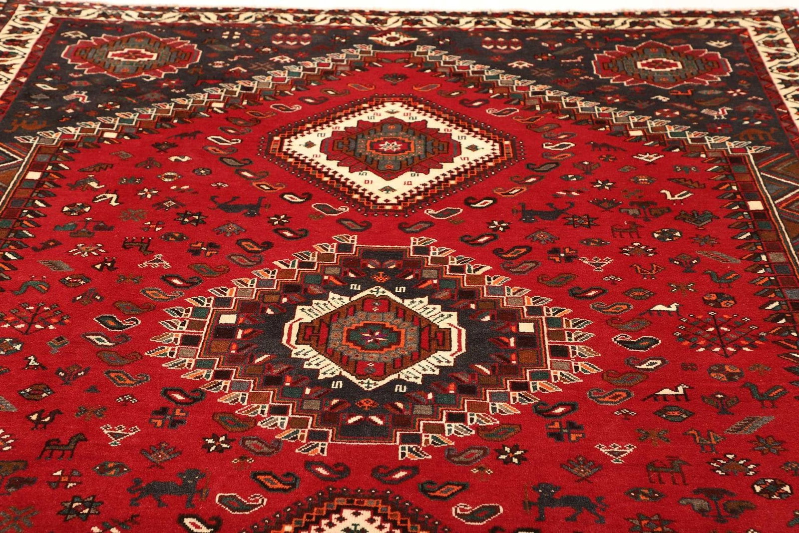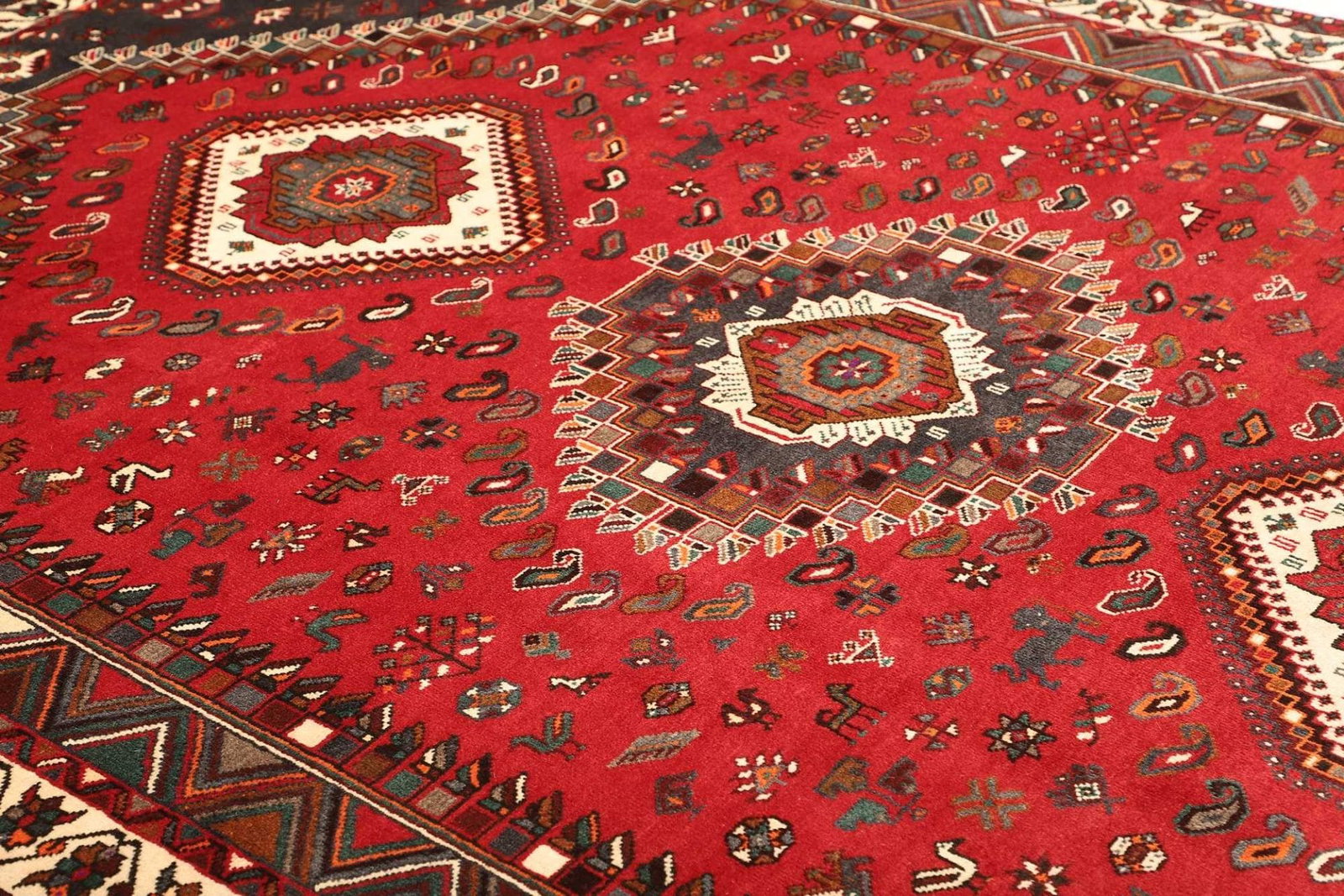 Shiraz Teppich | Größe: 223 x 308 cm | Knotendichte: ca. 200.000 Knoten/m² | Flor: 100% Schurwolle | Kette: 100% Baumwolle | Handgeknüpfte Qualität | Ursprung: Iran | Muster: Geometrisch und traditionell