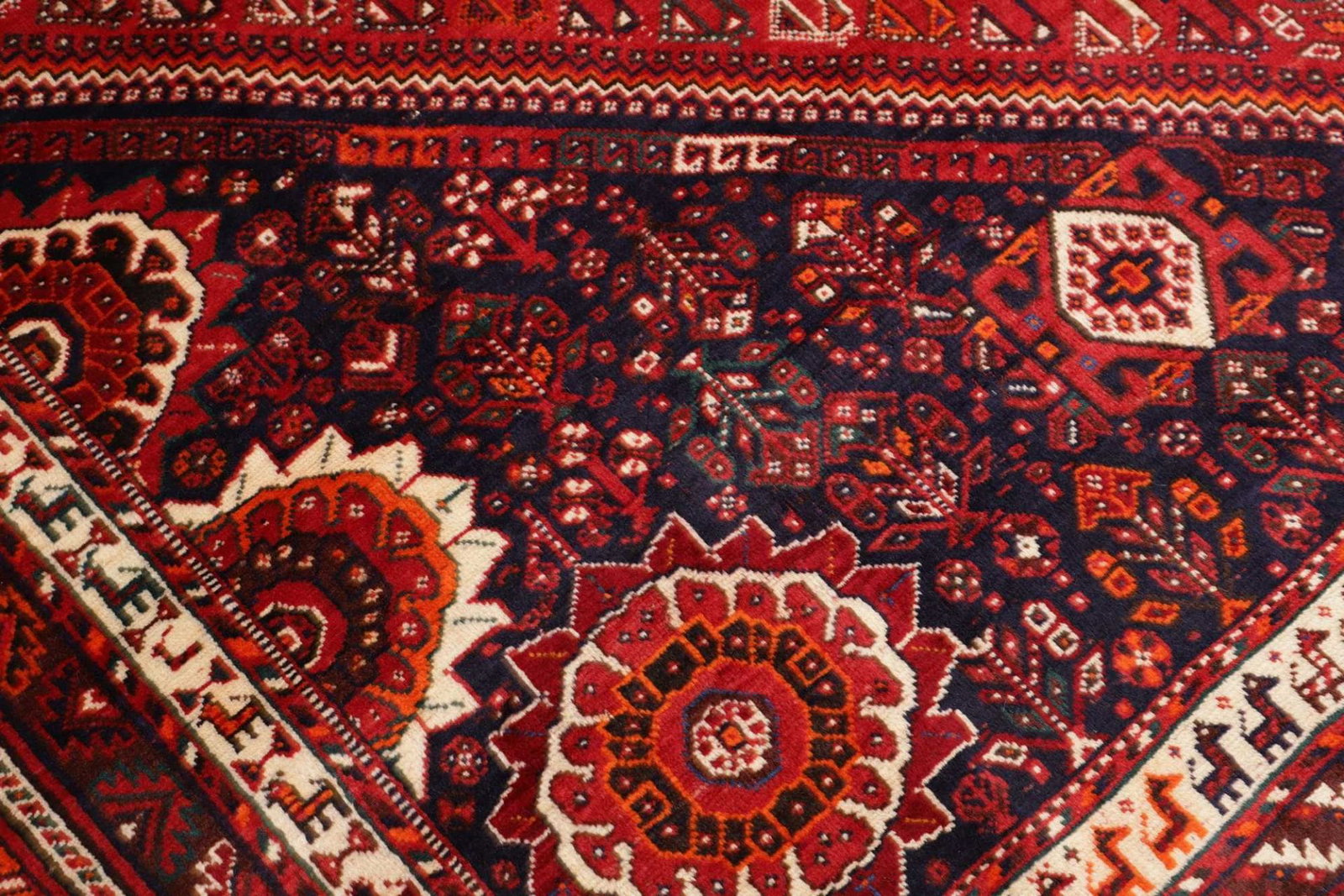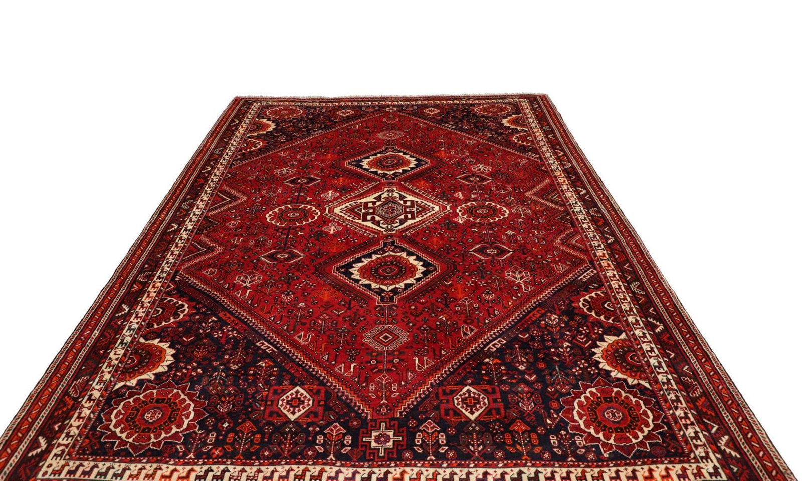 Shiraz Teppich | Knotendichte: ca. 200.000 Knoten/m² | Flor: 100% Schurwolle | Kette: 100% Baumwolle | Größe: 226×330 cm | Herkunft: Iran | Zustand: Handgeknüpft, hohe Qualität