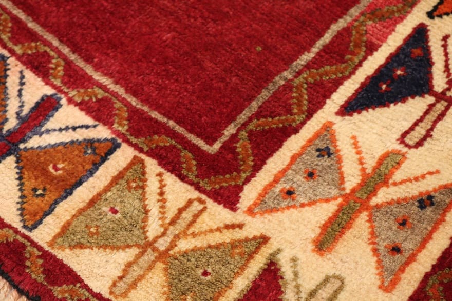 Das Ghaschghai-Design zeichnet sich durch eine Kombination aus traditioneller floraler und geometrischer Gestaltung aus. Die tiefen Rottönen, blauen Akzente und erdigen Farben verleihen dem Teppich eine warme und einladende Atmosphäre. Diese Designs sind oft inspiriert von der Natur und den Landschaften, die die Ghaschghai-Völker bewohnen, und spiegeln ihre tiefe Verbindung zu ihrer Umgebung wider. Jedes Muster erzählt eine Geschichte und trägt die kulturelle Identität der Region in sich.