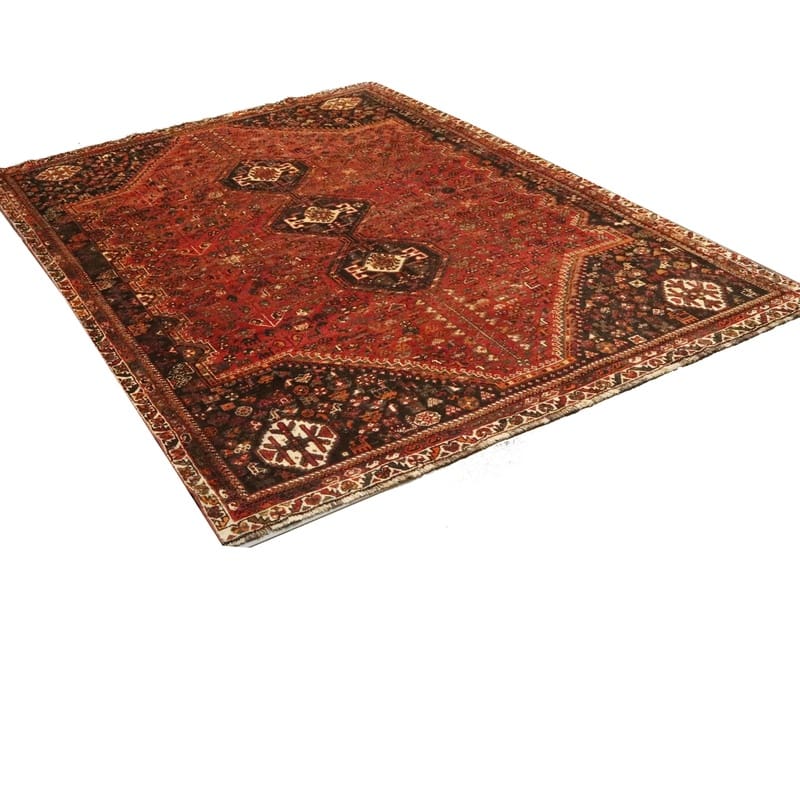 Der Teppich stammt aus der Region Shiraz, die bekannt ist für ihre Teppichproduktion. Shiraz liegt im Süden Irans und ist eine Stadt, die für ihre kulturelle Relevanz und die Integrität ihrer Kunsthandwerke geschätzt wird. Teppiche aus dieser Region sind in der Regel für ihre kräftigen Farben und die Verwendung traditioneller Motive bekannt. Dabei wird oft Inspiration aus der Natur und der Umwelt gezogen, was in den Bergamotten-Motiven des Teppichs zum Ausdruck kommt.