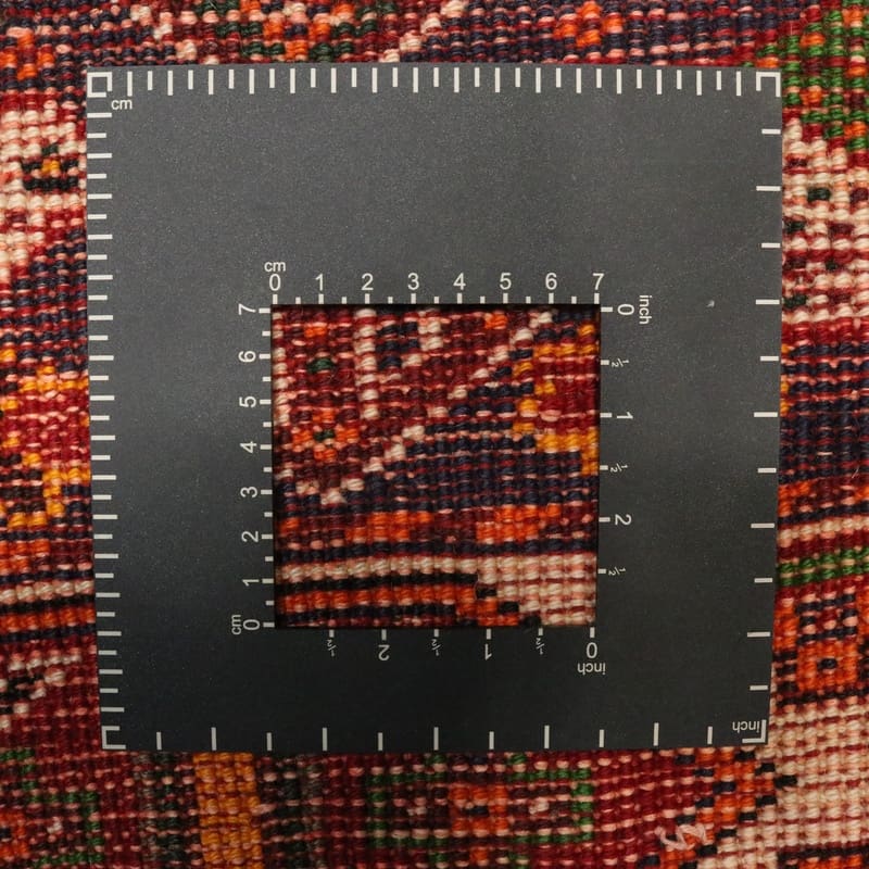 Leuchtend roter Hintergrund | Muster: Geometrisch mit Bergamotte | Knotendichte: 128.000 – 160.000 Knoten/m² | Material: Handgeknüpfte Wolle | Größe: 308×208 cm | Herkunft: Iran / Persien | Zustand: Neuzeitlich (0-20 Jahre) | Dicke: ca. 8 mm | Gewicht: ca. 16 kg