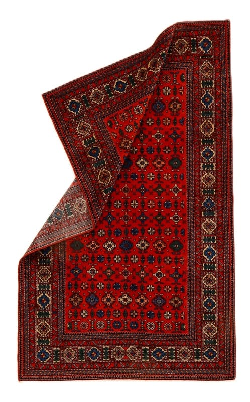 Antiker Shirwan-Teppich | Knotendichte: 160.000 – 200.000 Knoten/m² | Material: Hochwertige Schurwolle | Größe: 202×130 cm | Farbe: Rot/Orange | Zustand: Antik | Ursprung: Russland | Verarbeitung: Handgeknüpft | Dicke: ca. 10 mm | Gewicht: ca. 6 kg