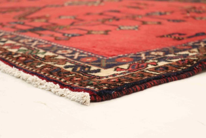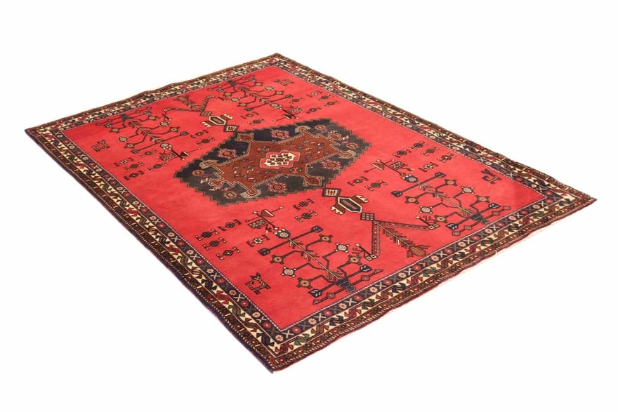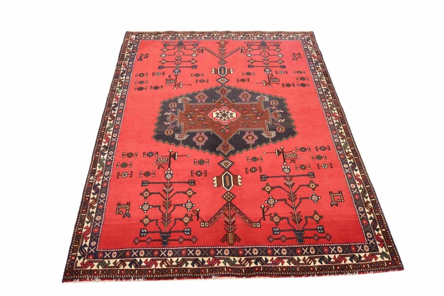 Authentischer Sirjan-Teppich | Knotendichte: 90.000 Knoten/m² | Material: 100% handgesponnene Wolle | Größe: 243×174 cm | In neuem Zustand | Farben: Warmes Rot/Orange | Herkunft: Iran/Persien