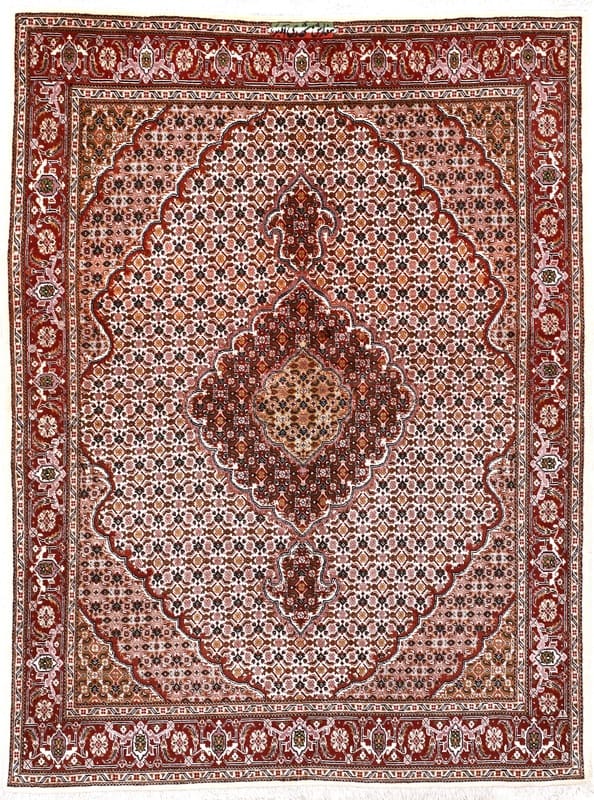 Tabriz Teppich 40 Raj | Knotendichte: 320.000 – 360.000 Knoten/m² | Material: Wolle und Baumwolle | Größe: 205×156 cm | Farbe: Weiß/Beige | Zustand: Neuzeitlich (0-20 Jahre) | Ursprung: Iran/Persien | Verarbeitung: Handgeknüpft