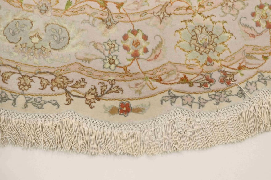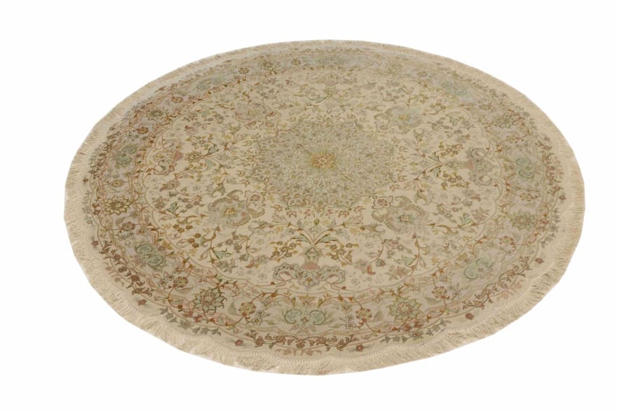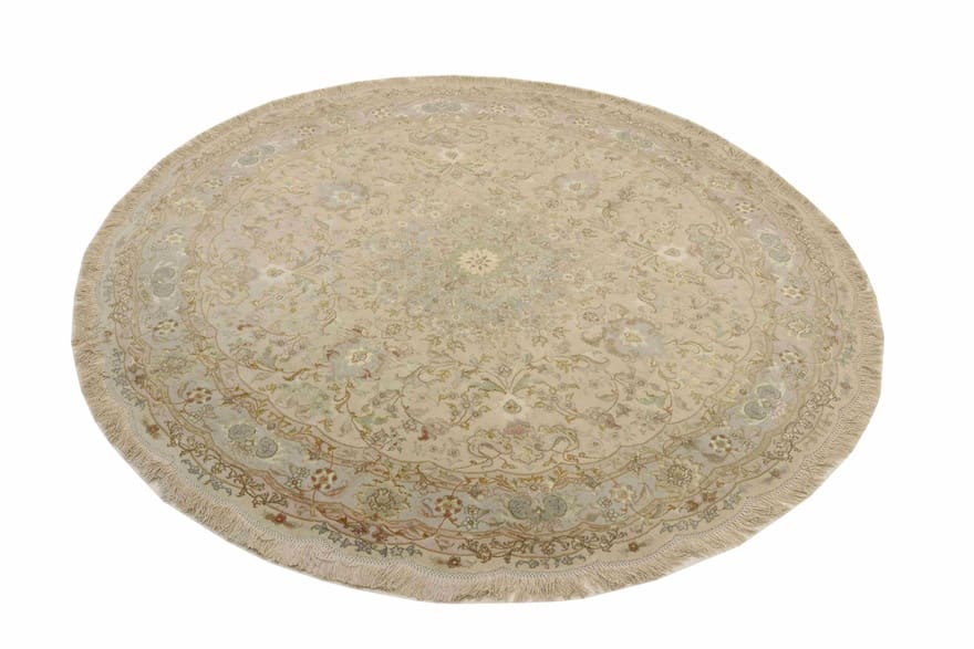 Tabriz 60 Raj Teppich | Knotendichte: 640.000 Knoten/m² | Material: Wolle und Seide | Größe: 204×203 cm | Zustand: Neu | Herkunft: Iran/Persien | Form: Rund | Dicke: ca. 6 mm | Gewicht: ca. 8 kg