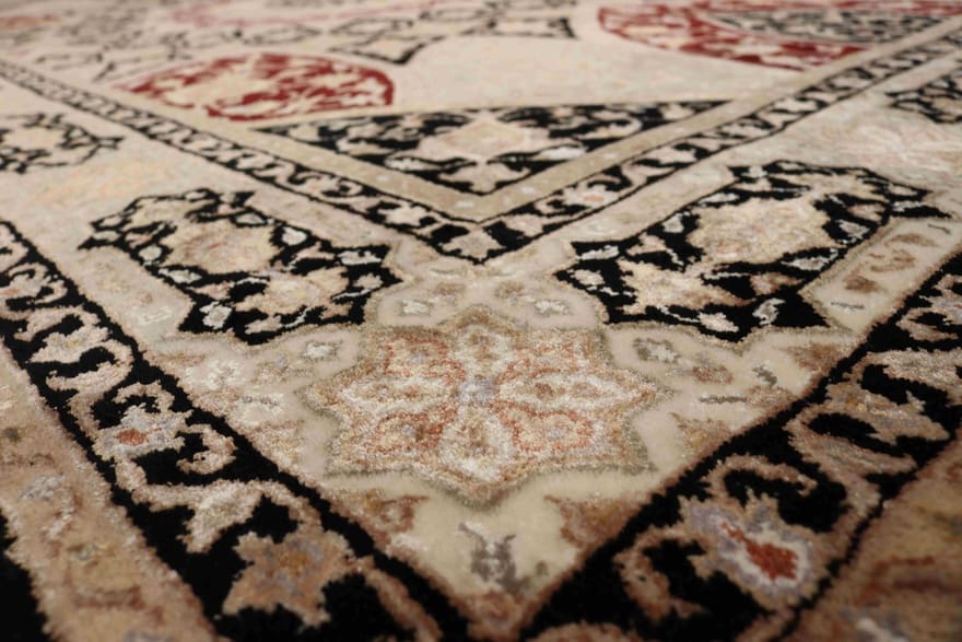 Tabriz Gumbad Teppich | Knotendichte: 128.000 – 160.000 Knoten/m² | Material: Wolle und Viskose | Größe: 270×179 cm | In neuzeitlichem Zustand | Herkunft: Indien | Farbmuster: Multifarbe | Verarbeitung: Handgeknüpft