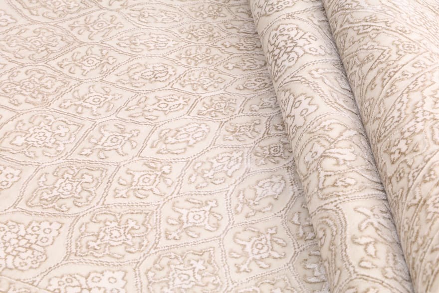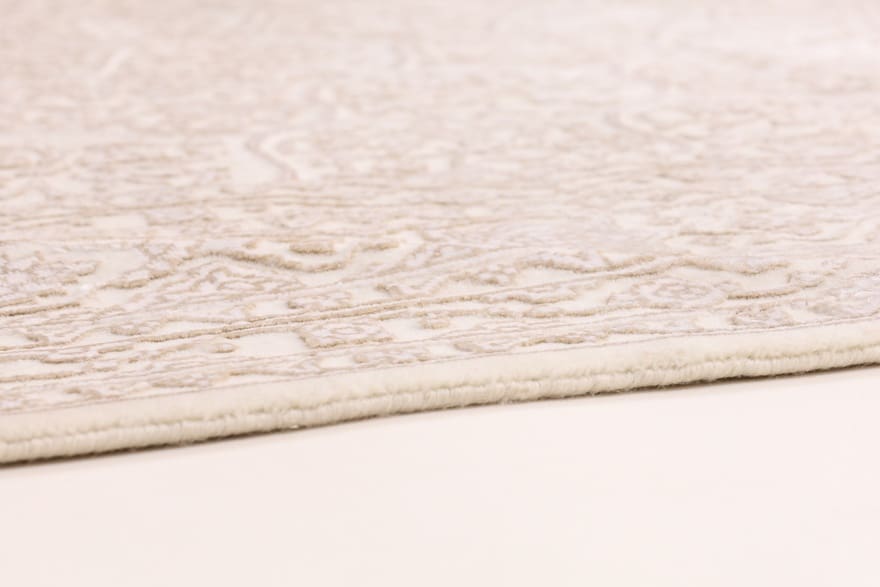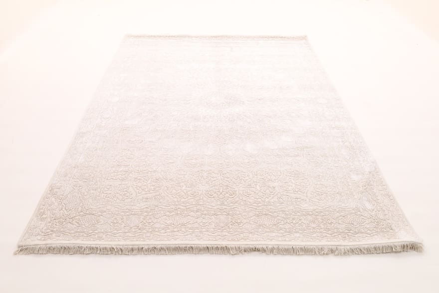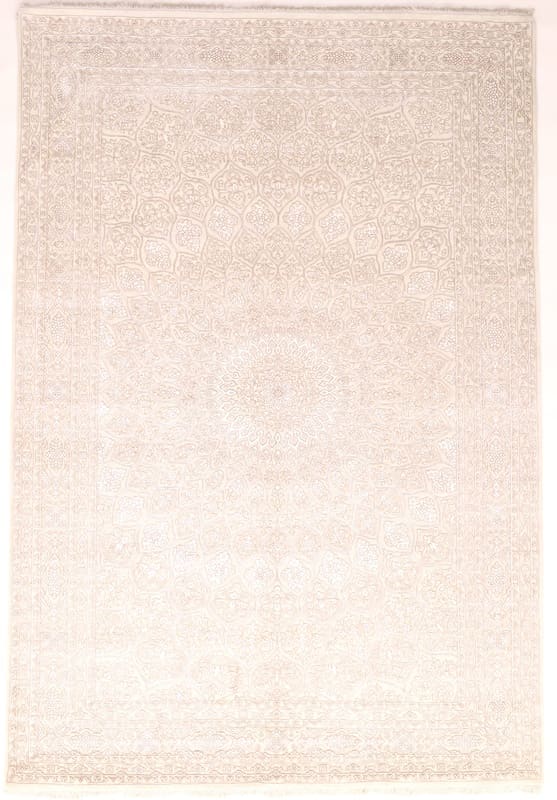 Tabriz Gunbad Teppich | Knotendichte: 200.000 – 250.000 Knoten/m² | Material: Wolle mit Bamboo Seide | Größe: 302×204 cm | Farbe: Weiß/Beige | Zustand: Neu | Herkunft: Indien | Verarbeitung: Handgeknüpft | Dicke: ca. 10 mm | Gewicht: ca. 20 kg