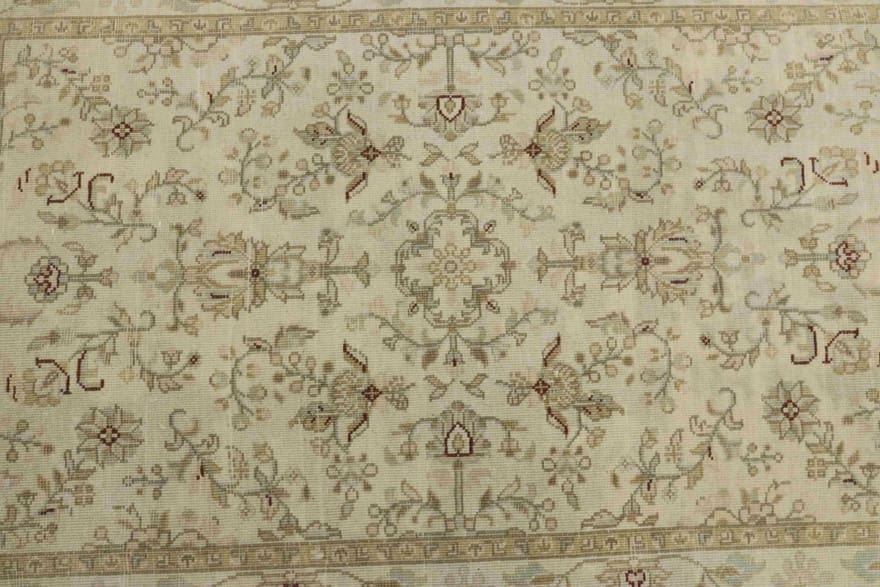 Handgeknüpfter Tabriz-Teppich | Knotendichte: 200.000 – 250.000 Knoten/m² | Material: Handgesponnene Wolle | Größe: 105×76 cm | Farbe: Weiß/Beige | Zustand: Neu | Ursprung: Iran / Persien | Dicke: ca. 10 mm | Gewicht: ca. 2 kg