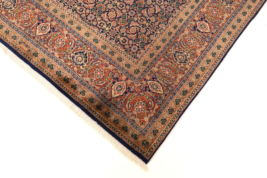 Der Teppich besteht aus hochwertigen Wolle und/oder Seide, die für ihre Weichheit und Langlebigkeit bekannt sind. Diese Materialien sorgen nicht nur für eine angenehme Haptik, sondern auch für eine bemerkenswerte Farbbrillanz, die das zeitlose Design des Teppichs unterstreicht. Die Knotendichte ist ein weiteres Merkmal, das die Qualität dieses Tabriz-Teppichs bestimmt. Eine hohe Knotendichte sorgt für eine geschmeidige Textur und ein präzises Muster, wodurch der Teppich nicht nur ästhetisch ansprechend, sondern auch äußerst langlebig ist. Jeder Knoten wird mit Sorgfalt und Liebe zum Detail geknüpft, was sich in der Endqualität des Produkts widerspiegelt.