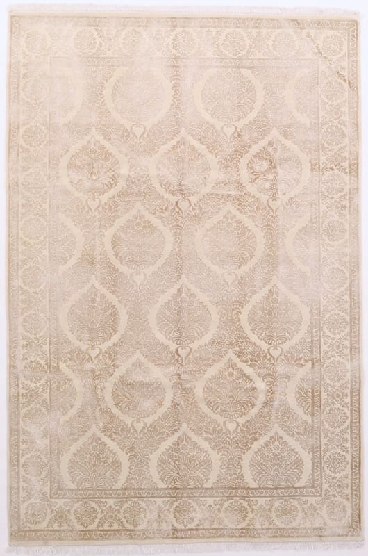 Handgeknüpfter Tabriz-Teppich | Knotendichte: 200.000 – 250.000 Knoten/m² | Material: Hochwertige Wolle und Baumwolle | Größe: 304×203 cm | Farbe: Weiß/Beige | Zustand: Neu | Ursprung: Indien