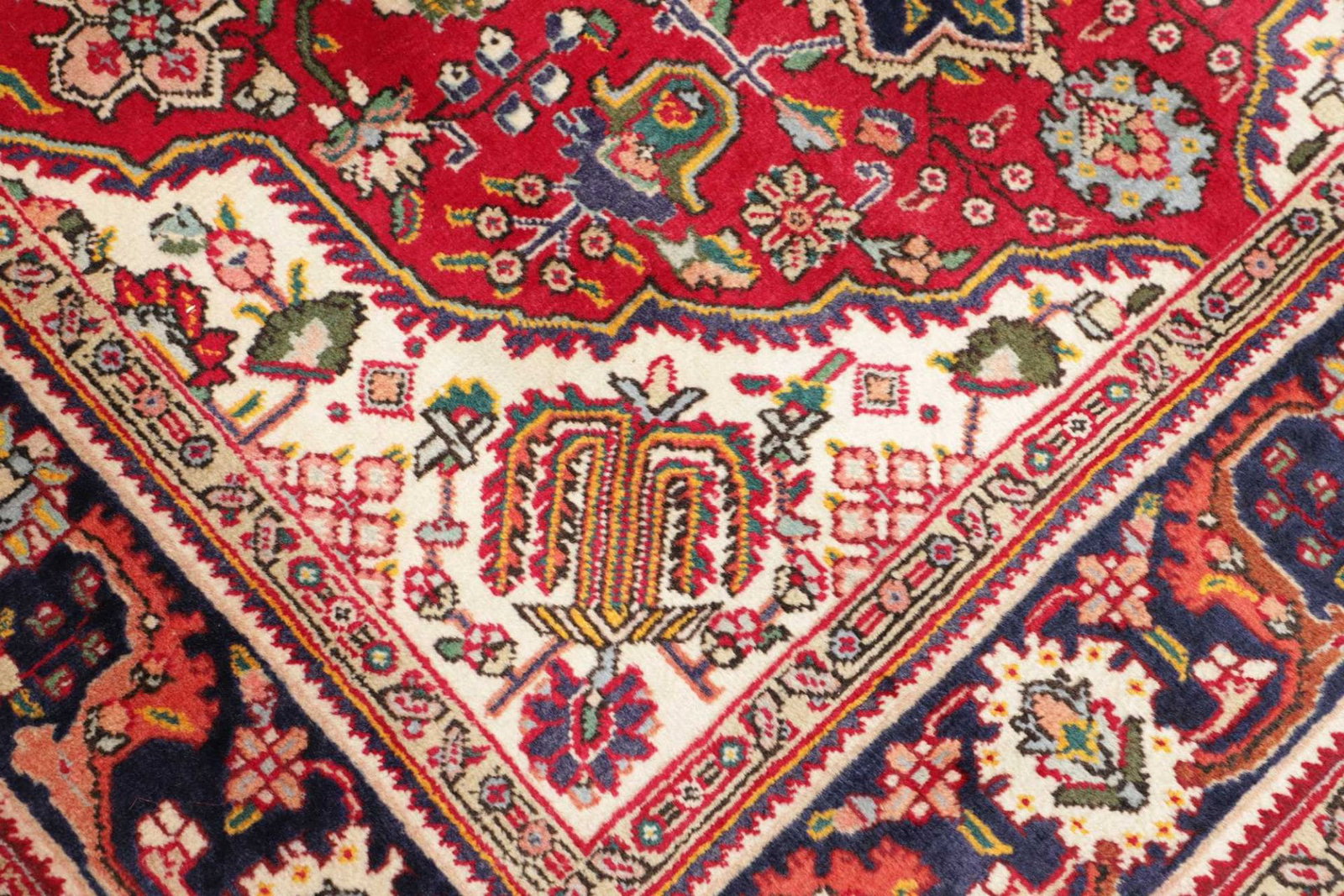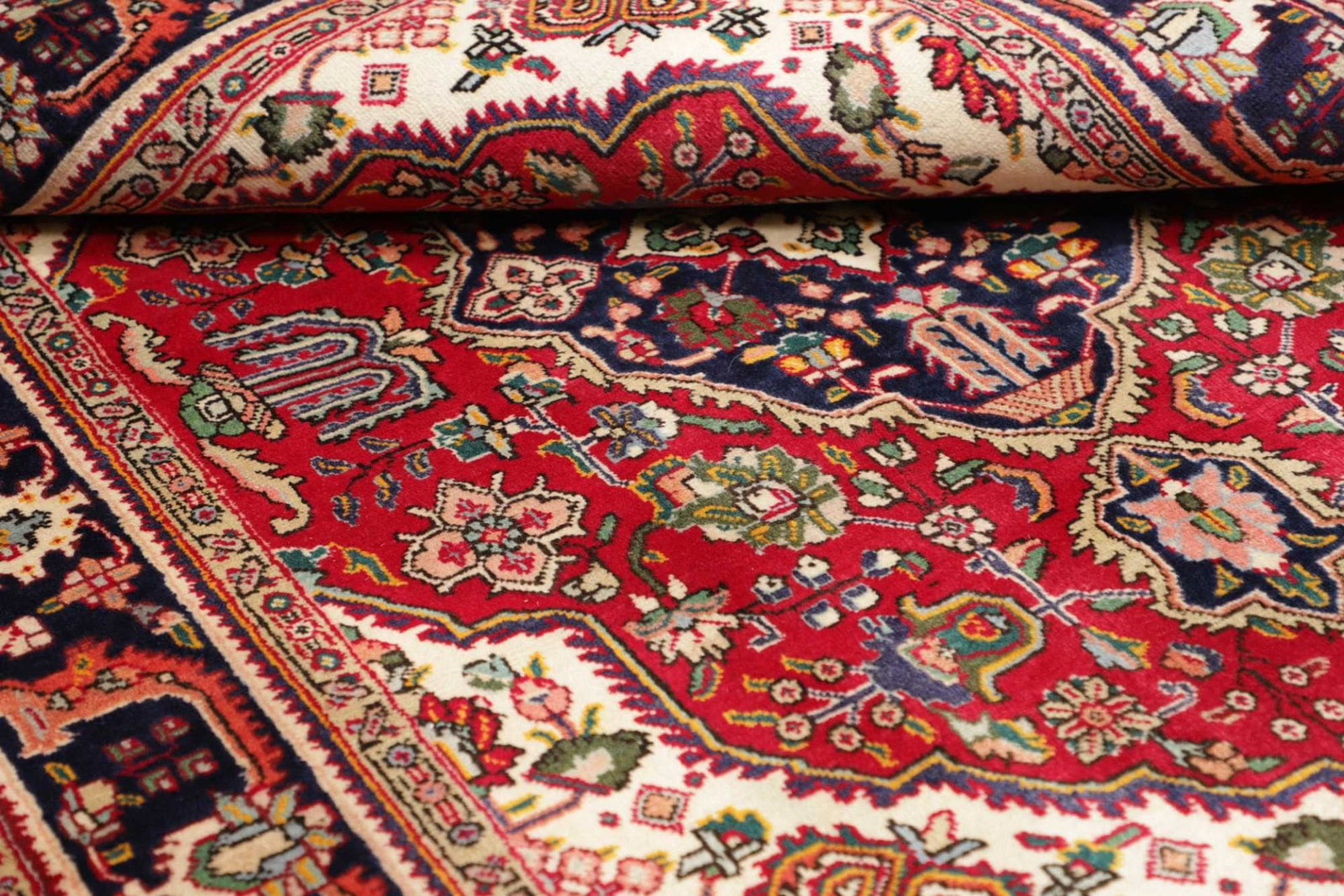 Ein herausragendes Merkmal dieses Täbriz Teppichs ist die hohe Qualität der Materialien und die Liebe zum Detail, die bei der Herstellung in jeden einzelnen Knoten eingearbeitet werden. Der Teppich ist nicht nur funktional, sondern auch ein zeitloses Dekorationsstück, das jedem Raum Charakter verleiht. Zudem ist er aufgrund seiner strapazierfähigen Wolle besonders geeignet für stark frequentierte Bereiche. Mit der Zeit wird der Teppich nicht nur schöner, sondern erhält auch seinen eigenen Charakter durch die Fußabdrücke, die man hinterlässt.