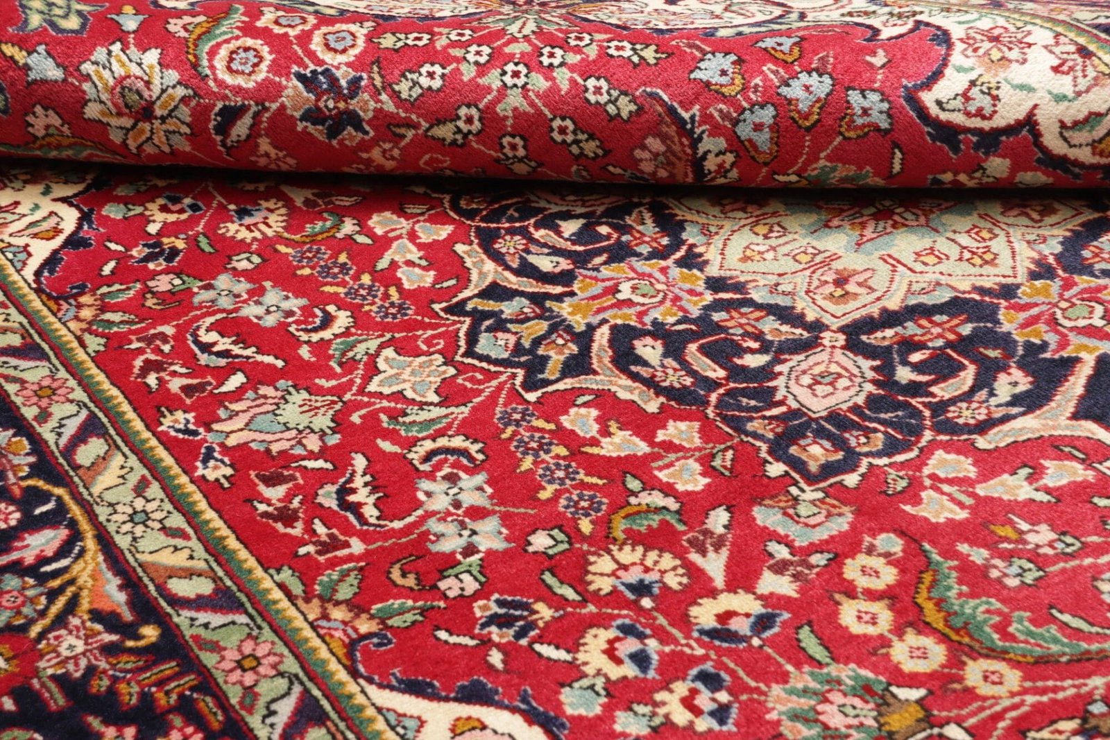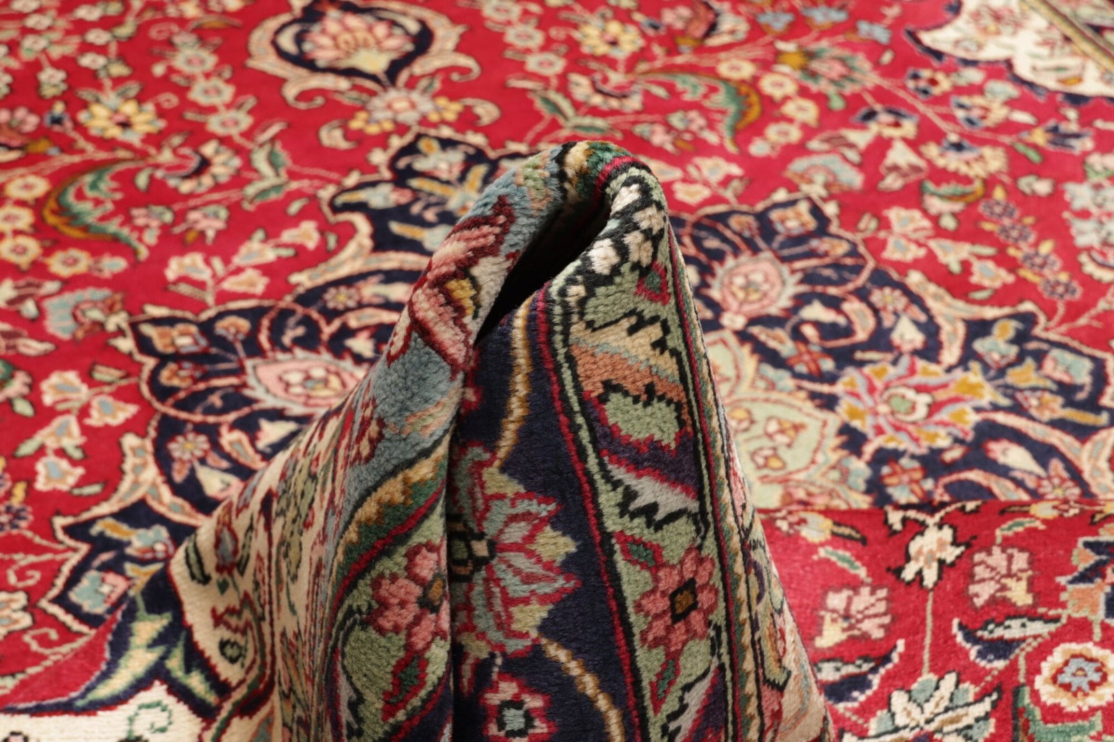 Dieser exquisite Täbriz Teppich wird aus sorgfältig ausgewählter Schurwolle hergestellt. Schurwolle ist bekannt für ihre weiche Haptik, Strapazierfähigkeit und hervorragenden isolierenden Eigenschaften. Jedes Garn wird einzeln verarbeitet und bringt die Tiefe und Farbvielfalt des floralen Designs hervorragend zur Geltung. Der Teppich ist handgeknüpft, was bedeutet, dass jeder Knoten mit Liebe und Hingabe von erfahrenen Kunsthandwerkern geschaffen wurde. Diese Technik sorgt für eine hohe Knotendichte, die den Teppich nicht nur optisch aufwertet, sondern auch eine lange Lebensdauer garantiert.