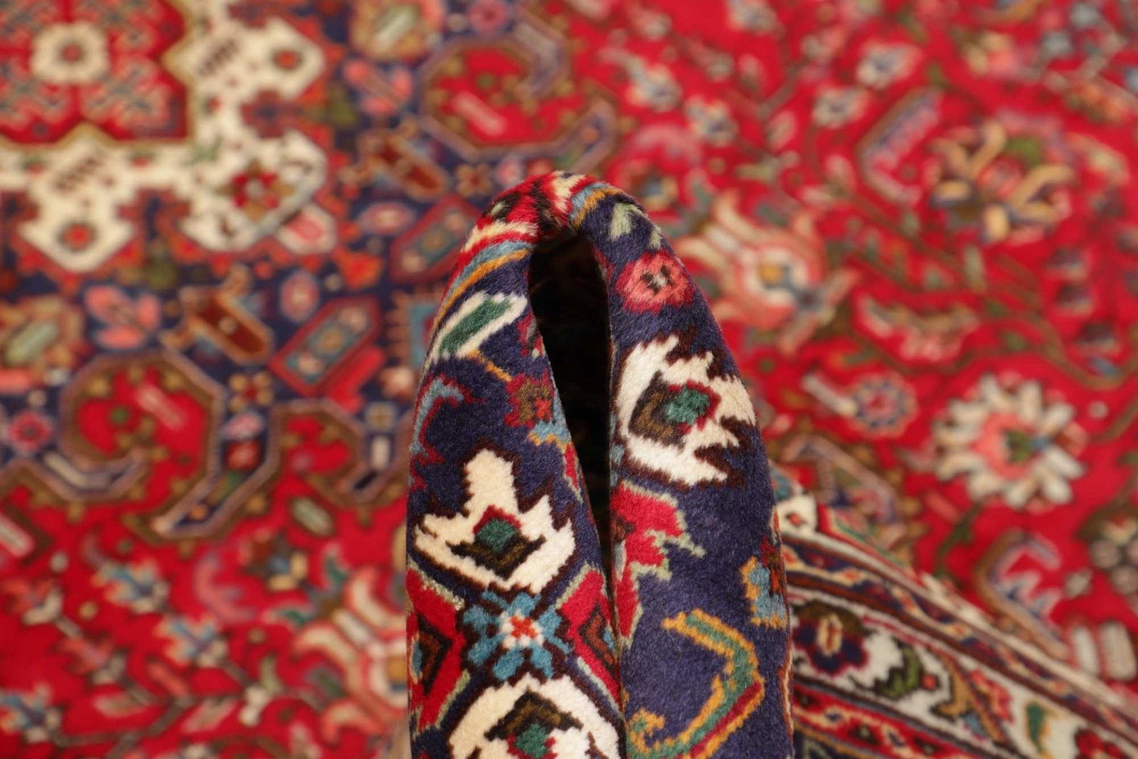 Ein bemerkenswertes Merkmal dieses Täbriz Teppichs ist die handgeknüpfte Herstellung, die nicht nur zur Qualität und Langlebigkeit beiträgt, sondern auch jedem Teppich eine individuelle Note verleiht. Jeder Knoten erzählt eine eigene Geschichte und umfasst die Leidenschaft und Hingabe der Kunsthandwerker, die diese wunderschönen Produkte schaffen.