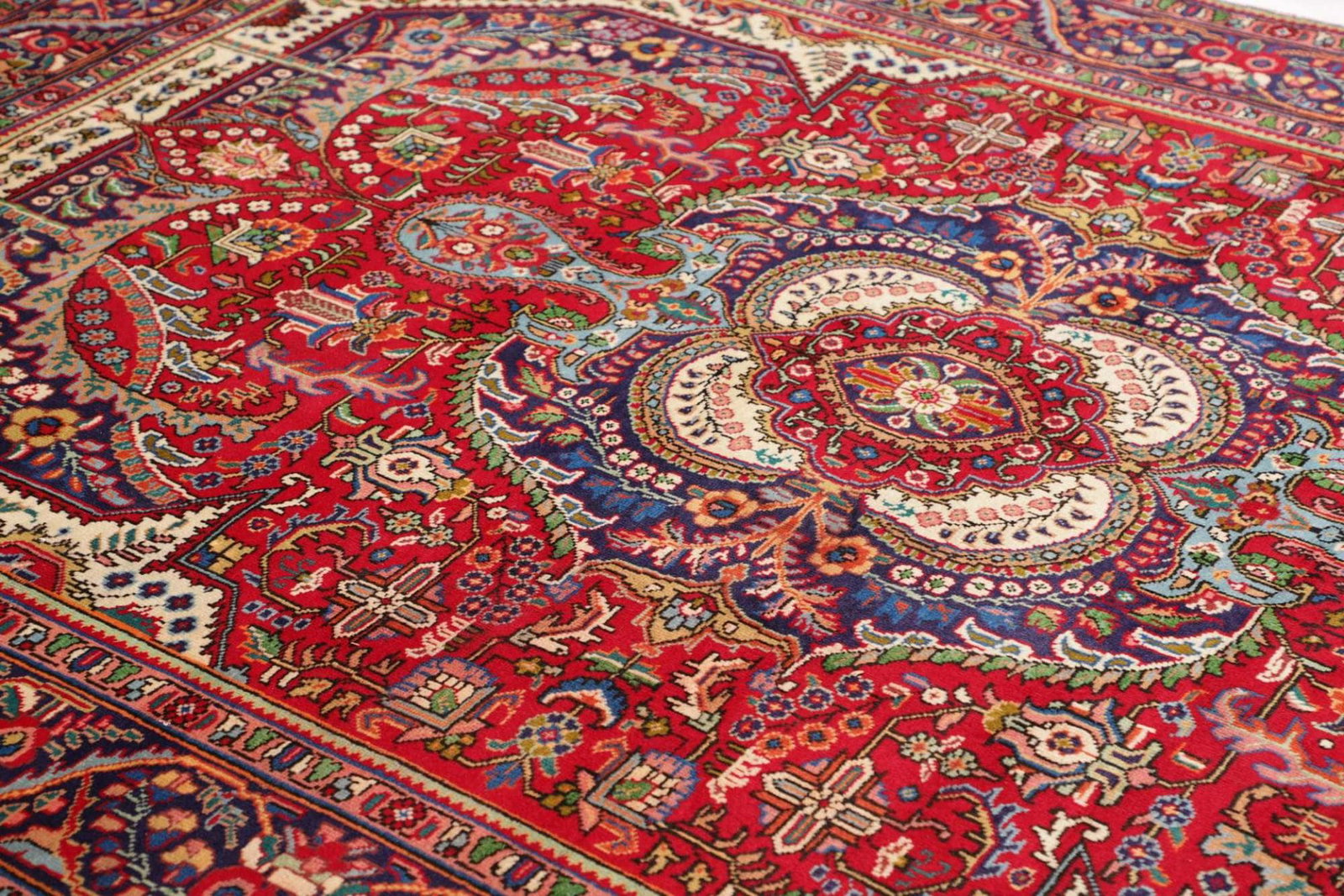 Täbriz, die Hauptstadt der gleichnamigen Provinz im Nordwesten Irans, ist eine der ältesten und bekanntesten Teppichproduceuren der Welt. Die Stadt hat eine lange Geschichte in der Teppichknüpfung, die bis ins 15. Jahrhundert zurückreicht. Teppiche aus Täbriz sind für ihre außergewöhnliche Qualität, Vielfalt an Designs und Farben sowie ihre Detailtreue bekannt. Sie zeigen oft komplexe Muster, die von floralen Motiven bis hin zu geometrischen Formen reichen. Die Tradition der Teppichknüpfung wird von Generation zu Generation weitergegeben und bleibt bis heute ein wichtiger Bestandteil der iranischen Kultur.