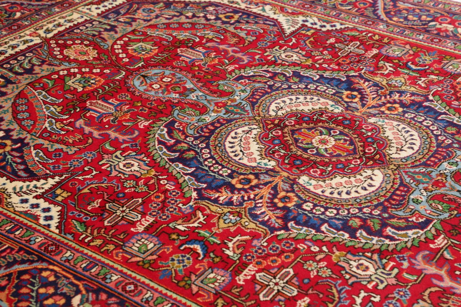 Der verwendete Schurwolle ist eines der besten Materialien für Teppiche, da er nicht nur angenehm weich, sondern auch äußerst langlebig ist. Die Wolle sorgt für eine ausgezeichnete Wärmeisolierung und ist schmutzabweisend, was den Teppich ideal für jeden Wohnbereich macht. Bei der Herstellung dieses Täbriz Teppichs wird auf eine sorgfältige Knotentechnologie zurückgegriffen, die eine hohe Knotendichte garantiert. Dies sorgt dafür, dass der Teppich sowohl robust ist als auch ein detailliertes und farbenfrohes Muster aufweist.