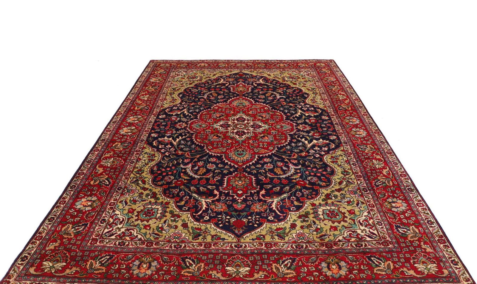Der beeindruckende Täbriz Teppich besticht durch sein florales Design und die einzigartige Handarbeit, die in jeden einzelnen Knoten geflossen ist. Als klassische Art persischer Teppiche, bietet dieser handgeknüpfte Teppich nicht nur visuelle Schönheit, sondern auch Langlebigkeit und Strapazierfähigkeit.