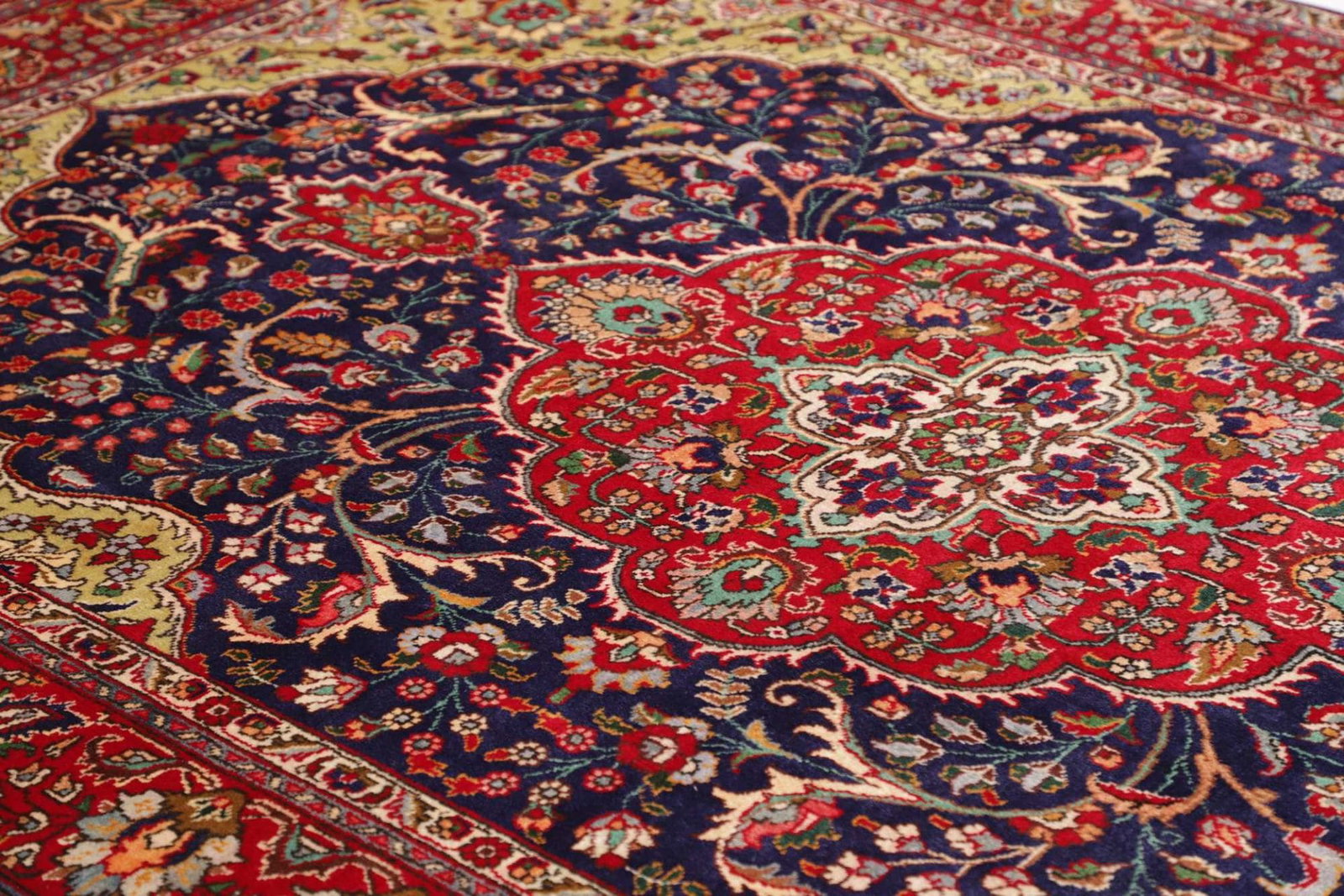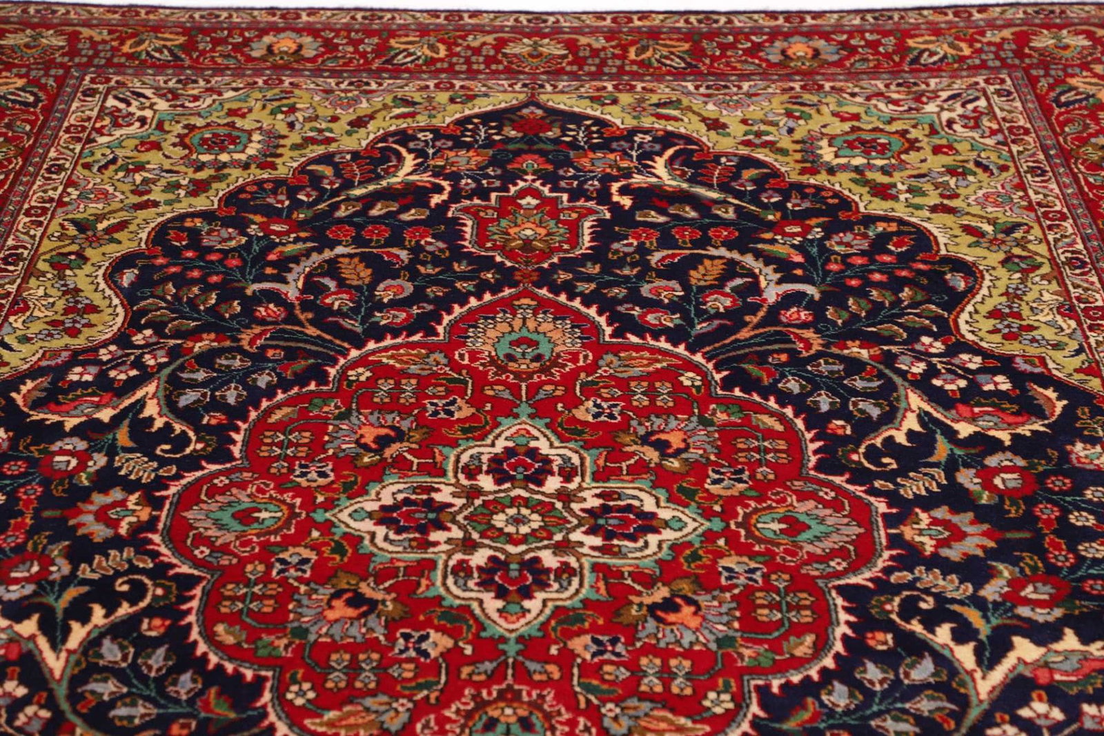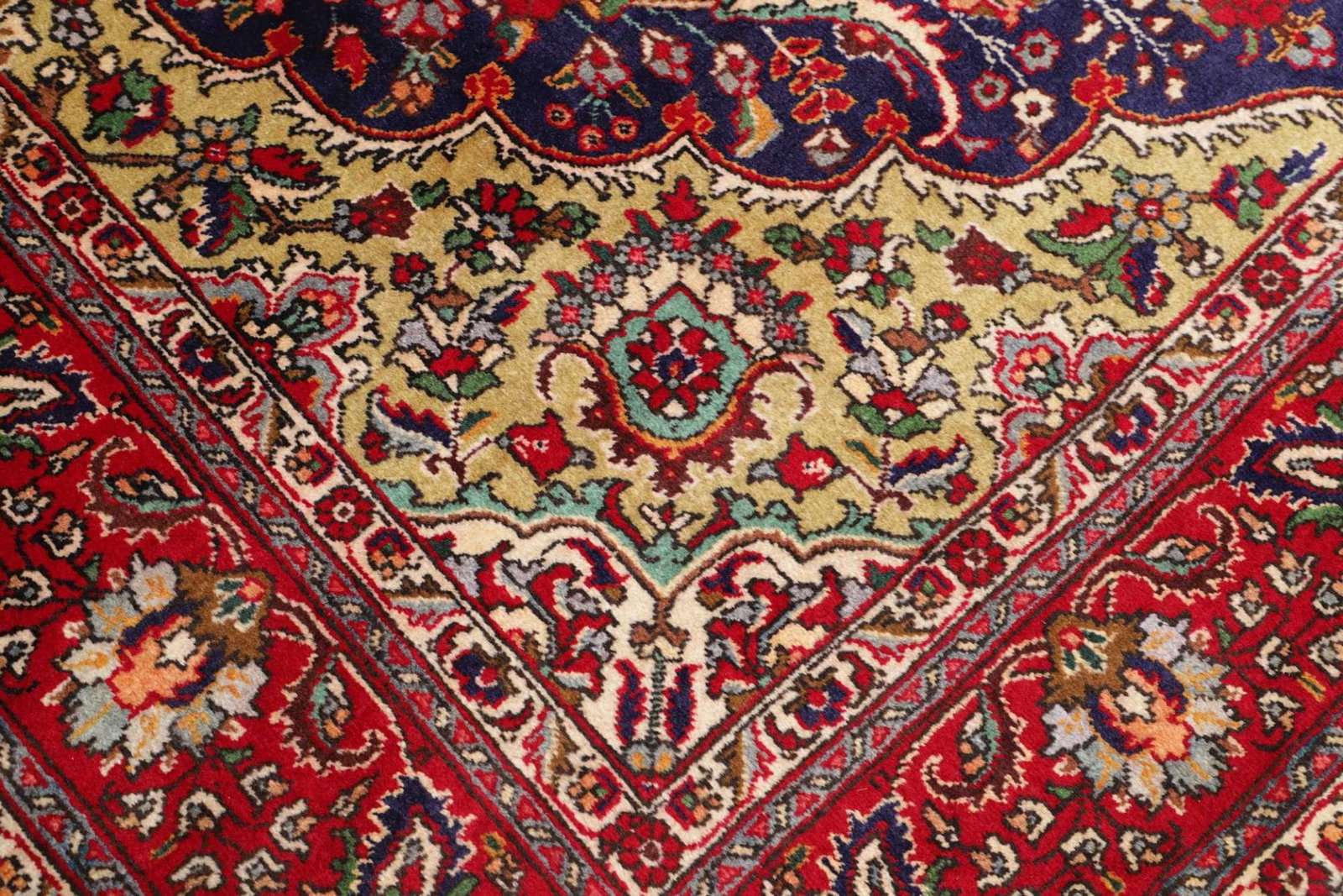 Hergestellt aus hochwertiger Wolle, bietet dieser Täbriz Teppich ein angenehmes und warmes Gefühl unter den Füßen. Die Kombination aus feinstem Garn und traditioneller Webkunst garantiert nicht nur eine lange Lebensdauer, sondern auch einen hohen Tragekomfort. Die gesamte Knotentechnik, die für diesen Teppich verwendet wurde, sorgt für eine hohe Knotendichte, die den Teppich besonders strapazierfähig macht und gleichzeitig die Detailtreue der floralen Muster hervorhebt. Jeder Knoten ist ein kleines Kunstwerk für sich.