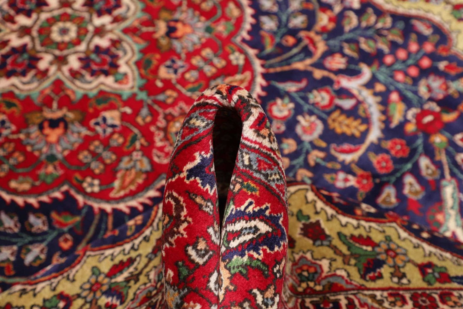 Ein weiterer bemerkenswerter Aspekt dieses Täbriz Teppichs ist die Detailtreue und die Feinheit der Muster, die durch die hohe Knotendichte möglich wird. Solche Teppiche sind nicht nur funktional, sondern auch eine Investition in Kunst und Kultur. Sie tragen zur Verschönerung Ihres Zimmers bei und können gleichzeitig als wertvolles Erbstück fungieren, das über Generationen hinweg weitergegeben wird.