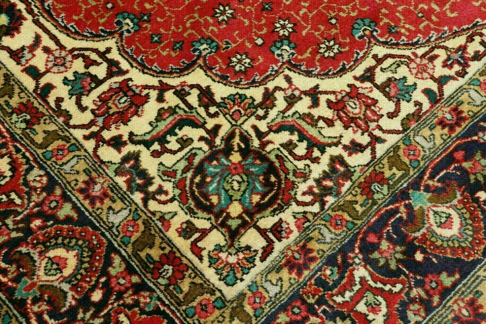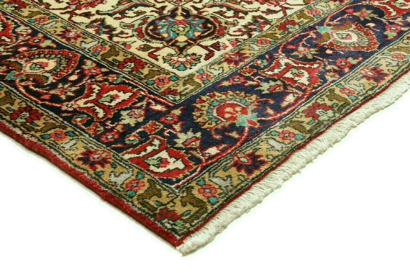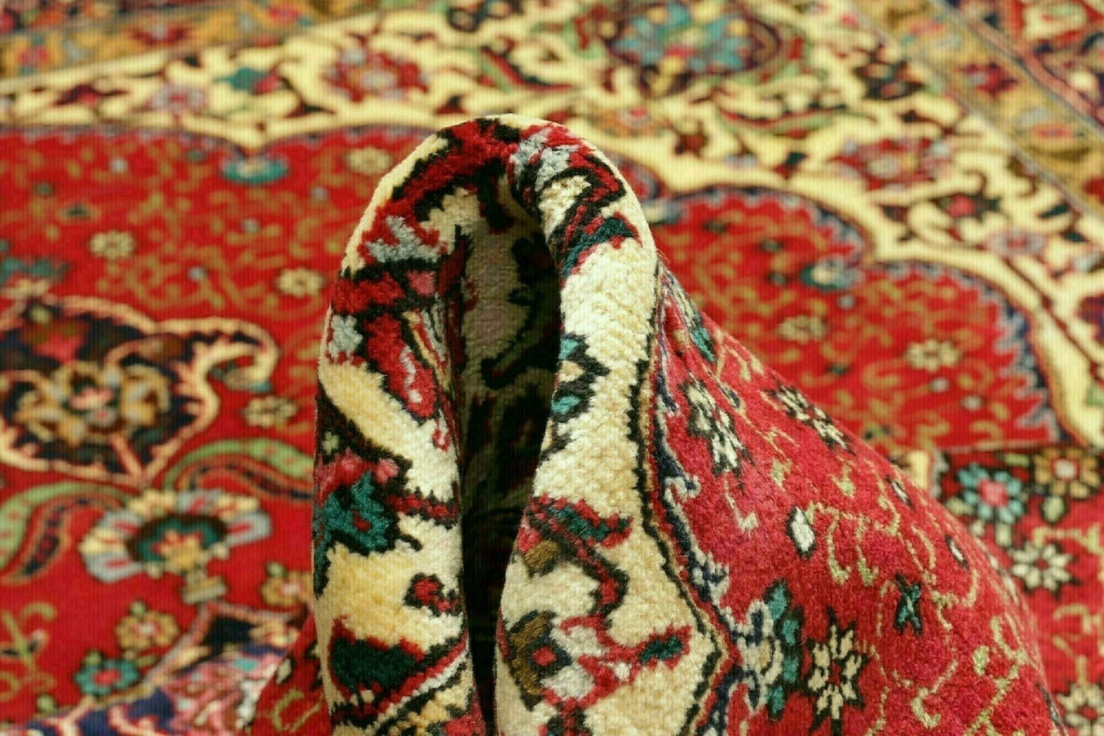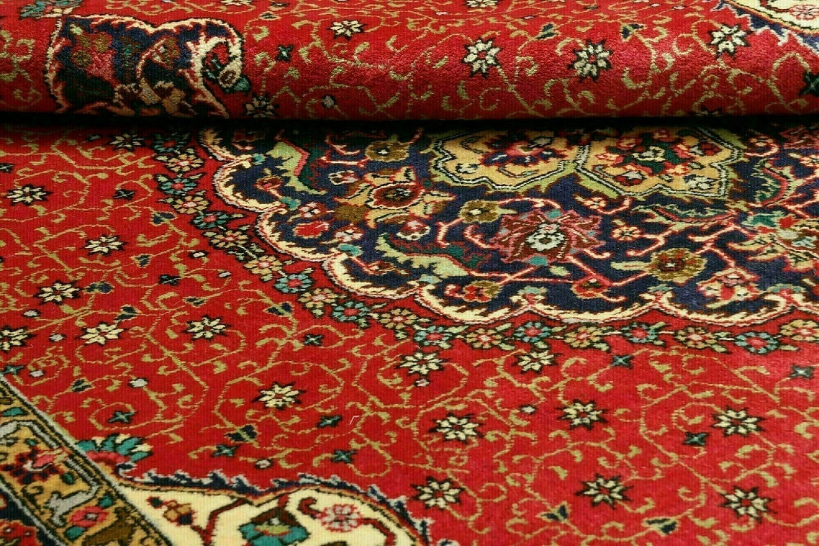 Dank der verwendeten hochwertigen Materialien bietet der Täbriz Teppich nicht nur ein beeindruckendes ästhetisches Erlebnis, sondern auch einen außergewöhnlichen Haptik. Das Gefühl des Teppichs unter den Füßen ist weich und einladend und macht ihn zur idealen Wahl für Wohn- und Schlafzimmer.