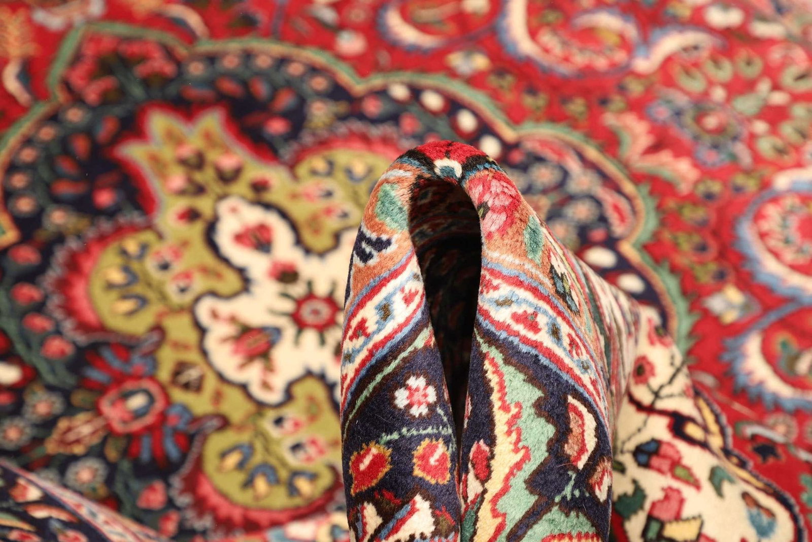 Ein weiterer bedeutsamer Aspekt des Täbriz Teppichs ist die Knotendichte, die oftmals bei über 300.000 Knoten pro Quadratmeter liegt. Diese hohe Knotendichte sorgt für die Langlebigkeit und Widerstandsfähigkeit des Teppichs, während sie gleichzeitig die Details der kunstvollen Muster hervorhebt. Der Teppich ist nicht nur ein praktisches Wohnaccessoire, sondern auch ein Kunstwerk, das Geschichten erzählt und einen Hauch von Geschichte in Ihr Zuhause bringt.
