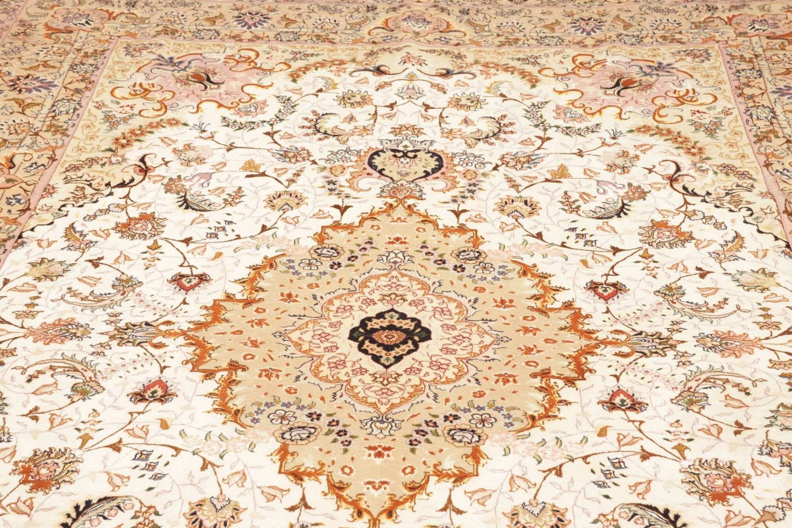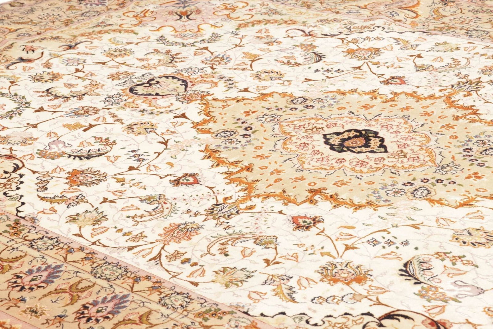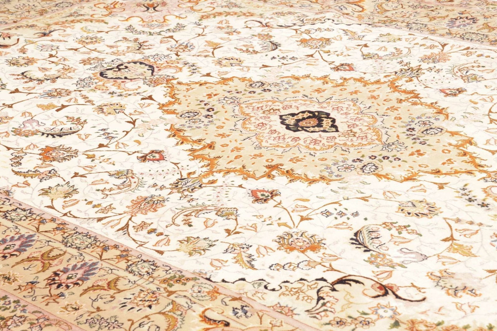 Der Teppich stammt aus der berühmten Region Täbriz im Iran, die für ihre reiche Tradition in der Teppichherstellung bekannt ist. Täbriz hat über Jahrhunderte hinweg handwerkliche Techniken verfeinert, die von Generation zu Generation weitergegeben wurden. Tabriz Teppiche sind für ihre feinen Details und komplexen Designs bekannt, die oft historische oder mythologische Themen aufgreifen. Die Teppichknüpferei in Täbriz zeichnet sich durch ihre feinfühlige Handarbeit aus, und viele der erfahrenen Handwerker haben ihr Leben der Erhaltung dieser alten Kunst gewidmet.