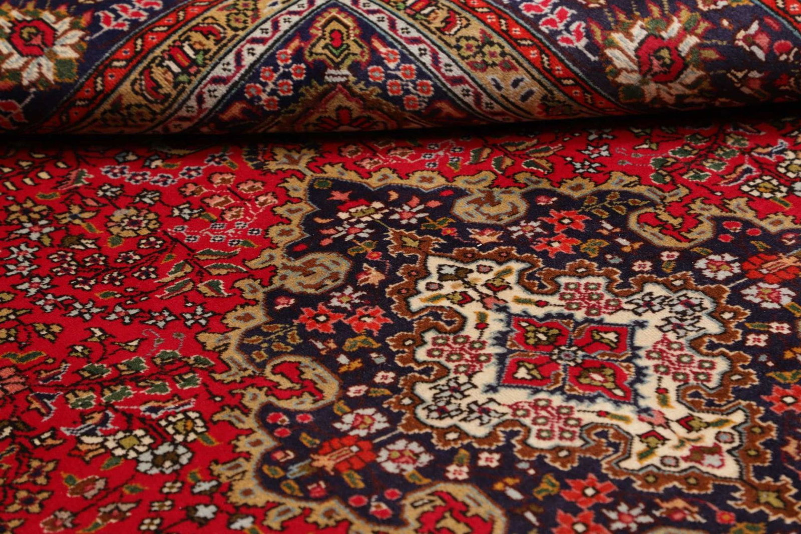 Die exquisite Verarbeitung und das eindrucksvolle Mahi-Muster machen den Täbriz Teppich zu einem herausragenden Vertreter der orientalischen Teppichkunst. Handgeknüpft aus edler Schurwolle, vereint dieser Teppich höchste Qualität mit ansprechendem Design und begegnet sowohl den Ansprüchen an Ästhetik als auch an Funktionalität. Seine sanfte Textur und die dichte Knotung zeugen von jahrelanger traditioneller Handwerkskunst, die in der Region Täbriz, im Iran, beheimatet ist.