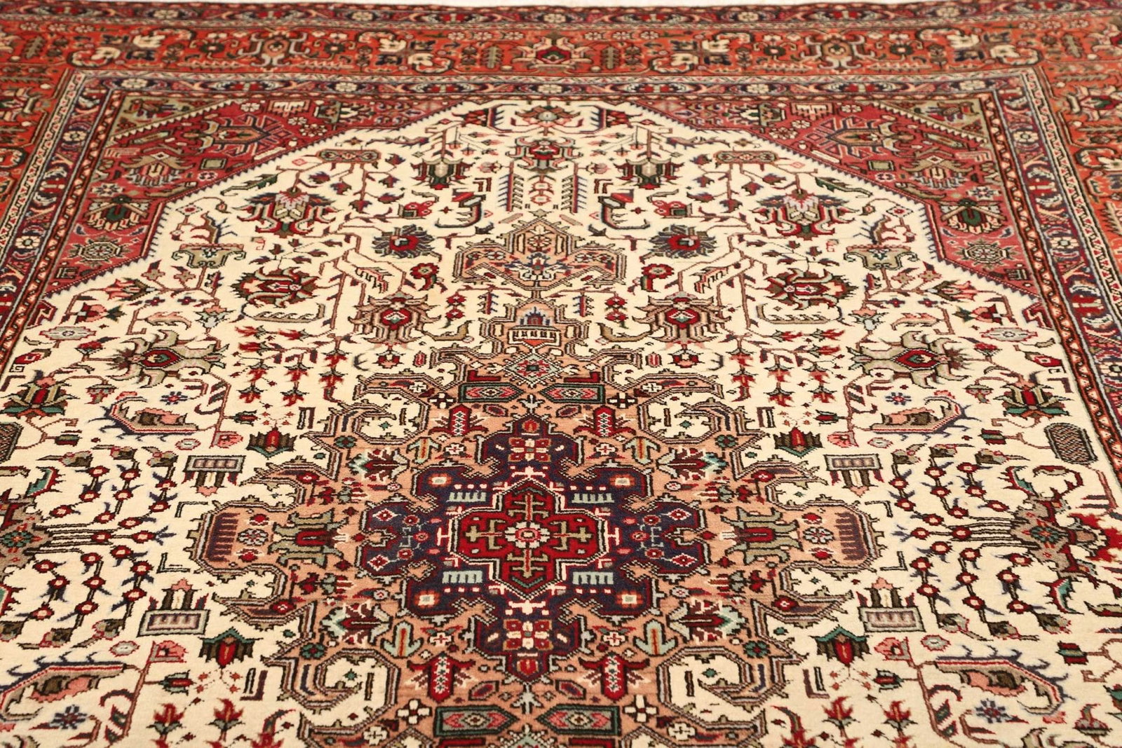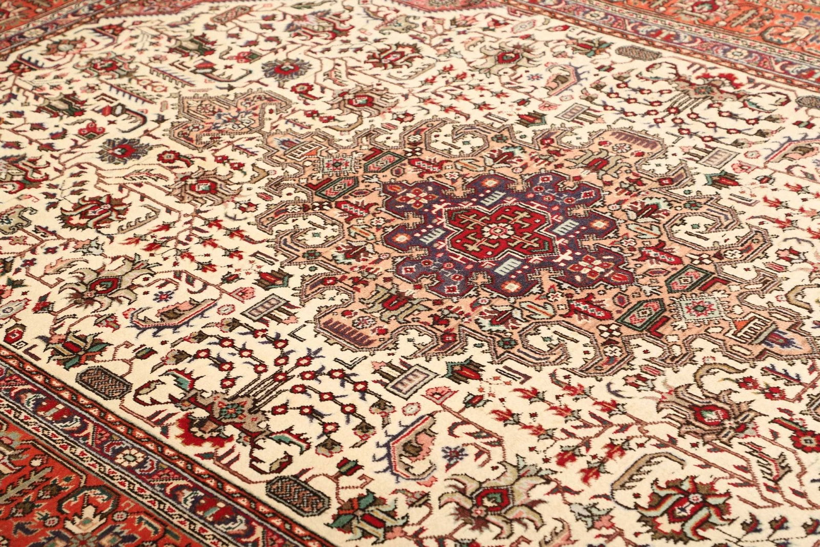 Dieser Teppich stammt aus Täbriz, einer der bedeutendsten Teppichstadt im Iran. Die Provinz West-Aserbaidschan ist berühmt für ihre exquisiten Teppiche, die traditionsreich und von hoher Qualität sind. Die Teppichweberei in Täbriz hat eine lange Geschichte, die bis ins 15. Jahrhundert zurückreicht. Die Teppiche aus Täbriz sind bekannt für ihre künstlerischen Designs und ihre vielfältige Palette an Farben. Die Stadt war ein wichtiges Zentrum für den Handel und die Kunst im Persianischen Reich und ist heute noch ein bedeutender Ort für die Teppichherstellung.