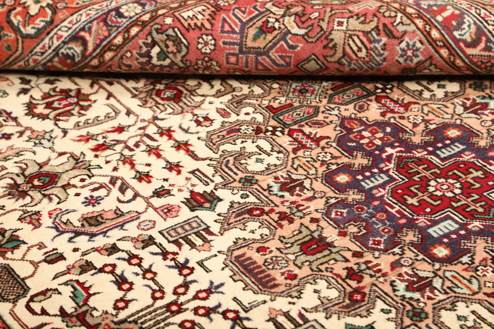 Die Farben des Teppichs sind sorgfältig ausgewählt und hochwertig gefärbt, um ihre Tiefgründigkeit zu bewahren. Ob im Wohnzimmer, im Esszimmer oder im Eingangsbereich – der Täbriz Teppich findet überall seinen Platz und verleiht jedem Raum ein Gefühl von Luxus und Wärme.