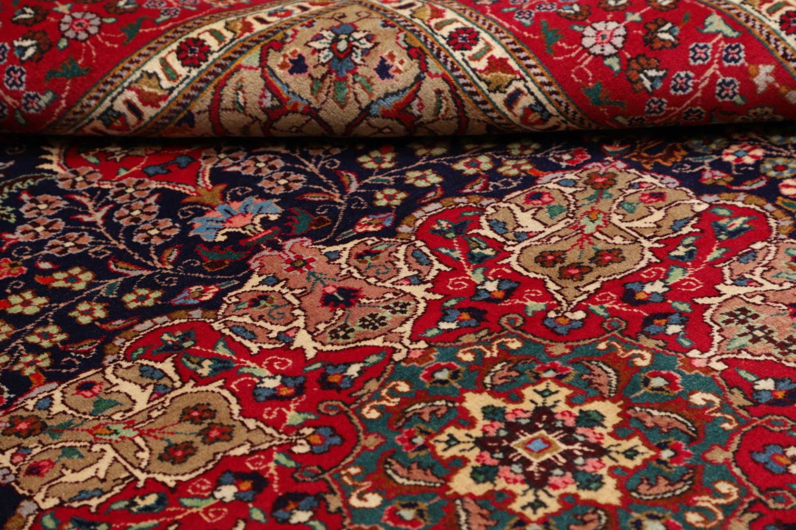 Ein weiteres herausragendes Merkmal dieses Täbriz Teppichs ist die sorgfältige Handarbeit, die in jeden einzelnen Knüpfpunkt eingeflossen ist. Jeder Teppich wird von erfahrenen Handwerkern gefertigt, die über umfangreiche Kenntnisse und Fähigkeiten verfügen. Die Liebe zum Detail wird in jedem Aspekt des Teppichs sichtbar, von den sorgfältig gewählten Farben bis hin zur präzisen Knotentechnik.