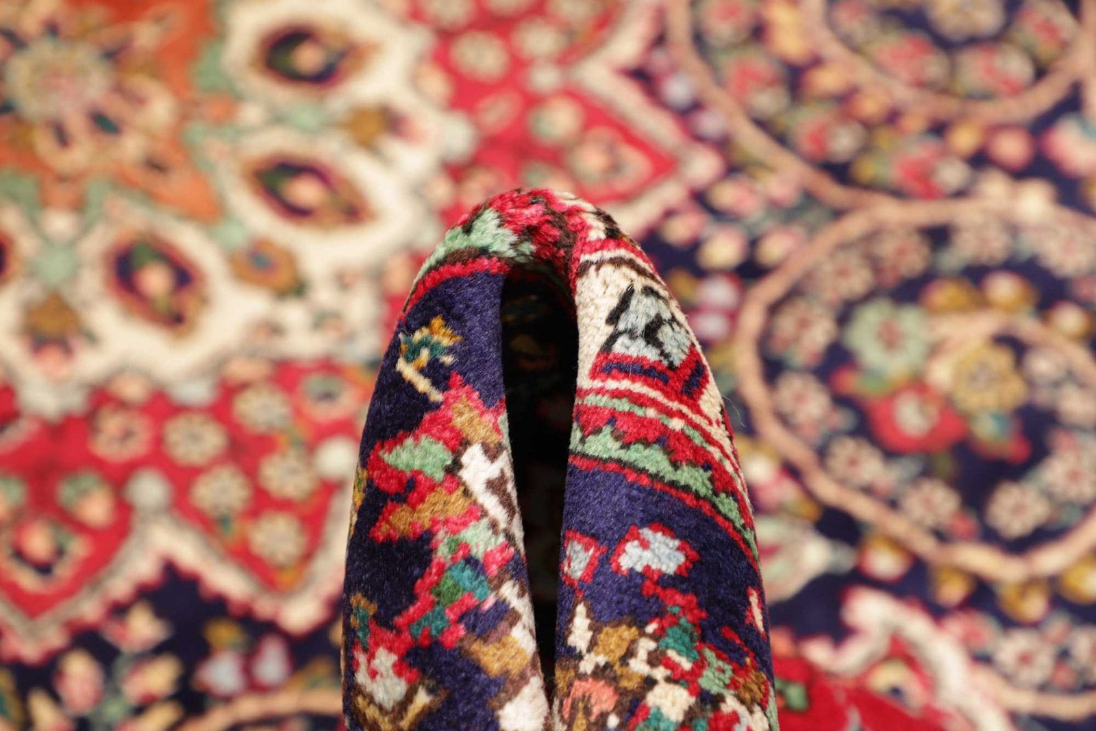 Dieser Teppich stammt aus Täbriz, einer Stadt im Nordwesten Irans, die für ihre reiche Teppichtradition bekannt ist. Täbriz ist eine der ältesten und bekanntesten Teppichherstellungsregionen des Iran und hat im Laufe der Geschichte viele berühmte Teppichdesigns hervorgebracht. Die Teppiche aus dieser Region zeichnen sich durch ihre Vielfalt an Mustern und Farben sowie durch die exquisite Handwerkskunst der Knüpfer aus. In Täbriz wird das Wissen über die Teppichknüpftechnik von Generation zu Generation weitergegeben, was dazu beiträgt, die hohe Qualität und das einzigartige Design zu bewahren.