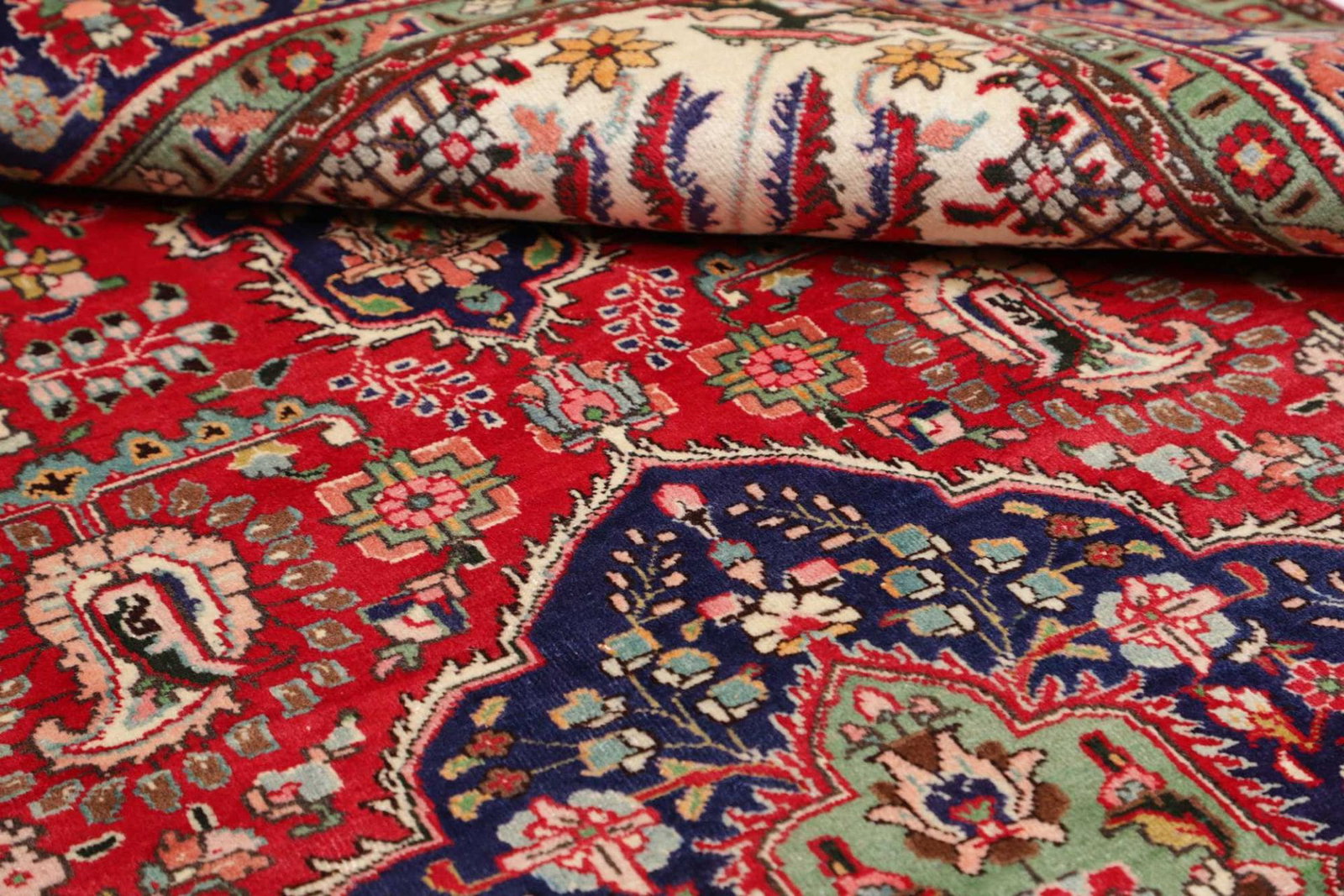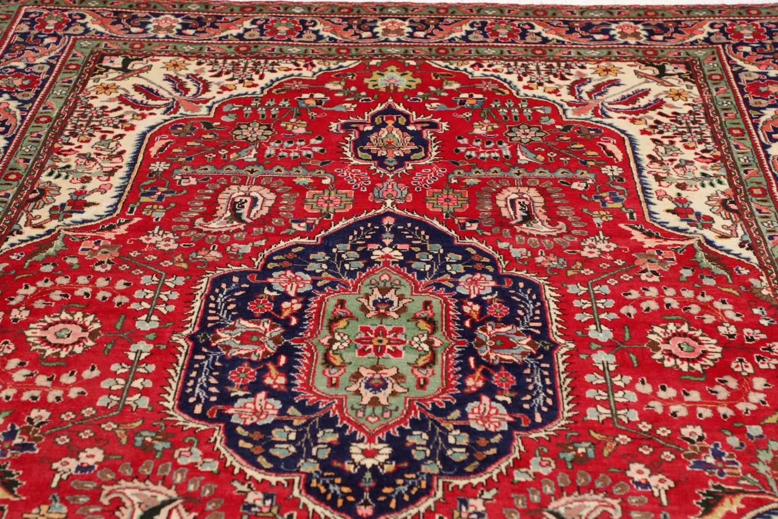 Das Design dieses Täbriz Teppichs ist sowohl eleganz- als auch detailreich und vermittelt ein Gefühl von Anmut und Stil. Die Kombination aus floralen und ornamentalen Mustern ist in lebendigen Farben gehalten, die, je nach Lichtverhältnissen, ihre Wirkung verändern können. Diese Teppiche sind nicht nur funktional, sondern auch dekorativ und eignen sich hervorragend als zentraler Blickpunkt in Ihrer Einrichtung.