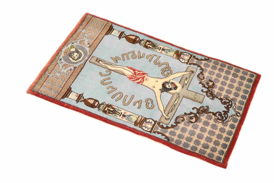 TeppichBazar Ghom Teppich 93×57 cm – Handgeknüpftes Kunstwerk, Kreuzigung