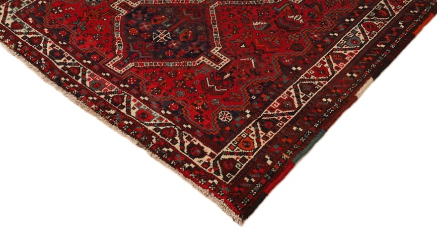 Handgewebter Shiraz-Teppich | Knotendichte: 128.000 – 160.000 Knoten/m² | Material: Hochwertige Wolle | Größe: 205×155 cm | Farbe: Rot/Orange | Zustand: Neuzeitlich (0-20 Jahre) | Herkunft: Iran/Persien | Verarbeitung: Handgeknüpft | Dicke: ca. 8 mm | Gewicht: ca. 10 kg