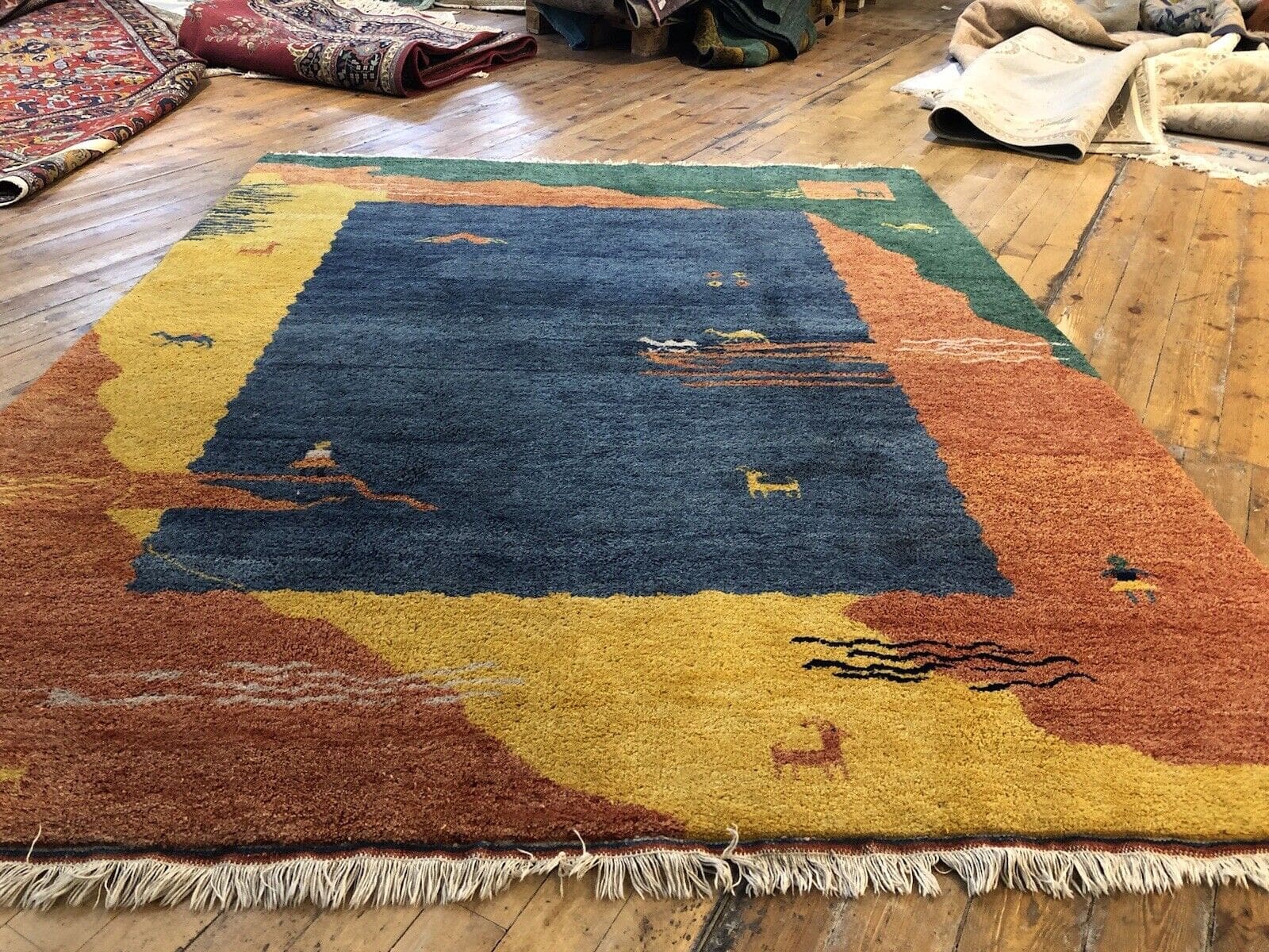 Top-Qualität Gabeh Perserteppich | Handgeknüpft | Größe: 260 cm x 200 cm | Material: Reine Schurwolle | Florhöhe: Hochflor | Muster: Klassisches Landschaftsmuster in Gelb | Zustand: Neu ohne Etikett | Besonderheiten: Geeignet für Fußbodenheizung | Stil: Klassisch | Regionales Design: Gabbeh
