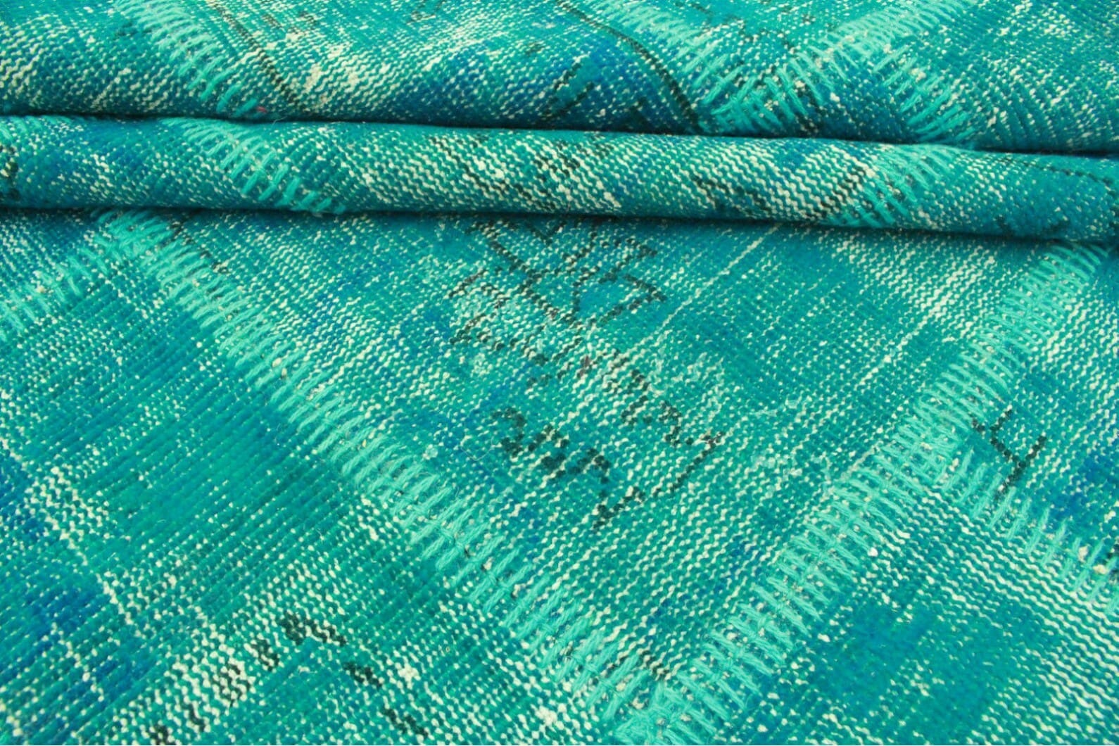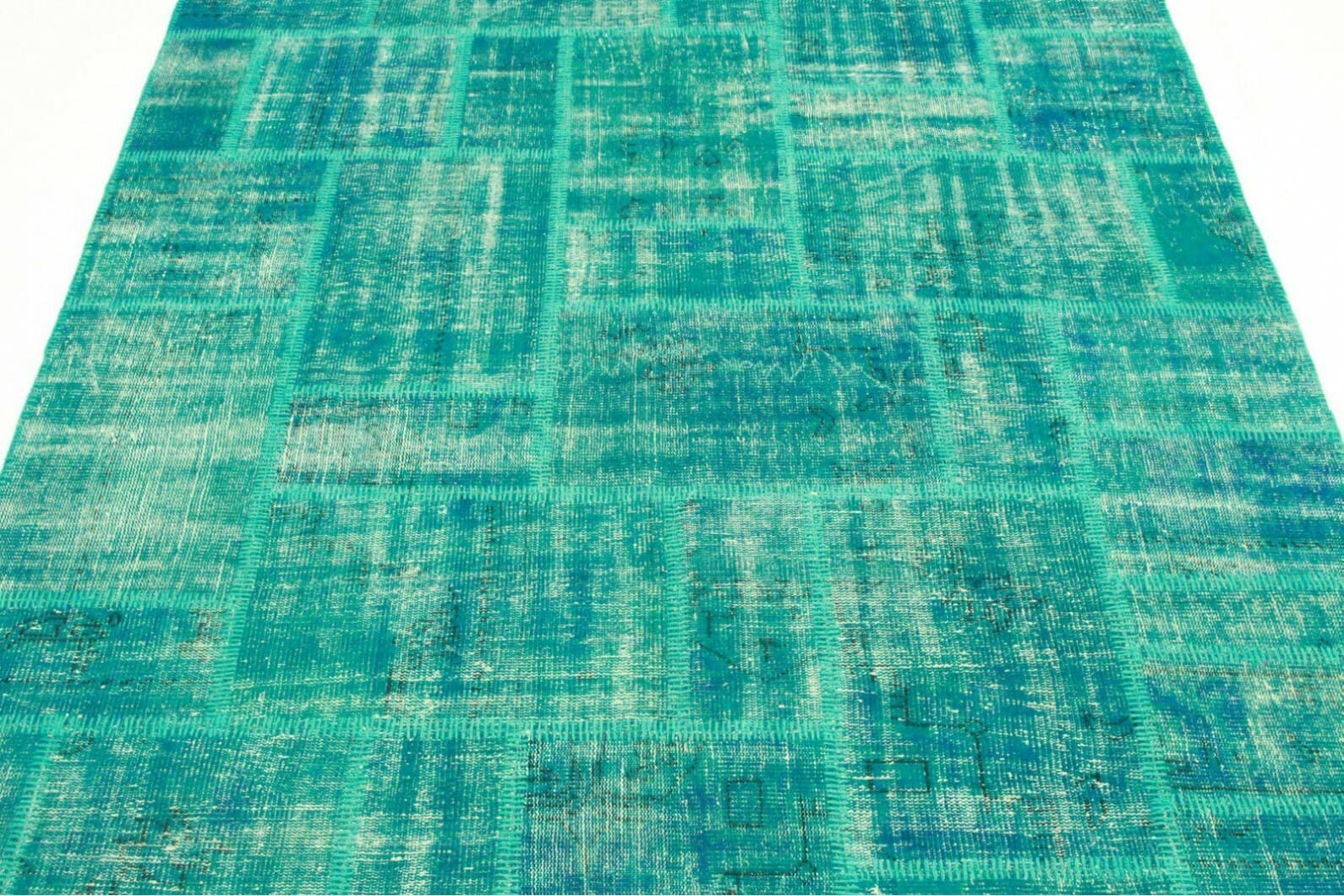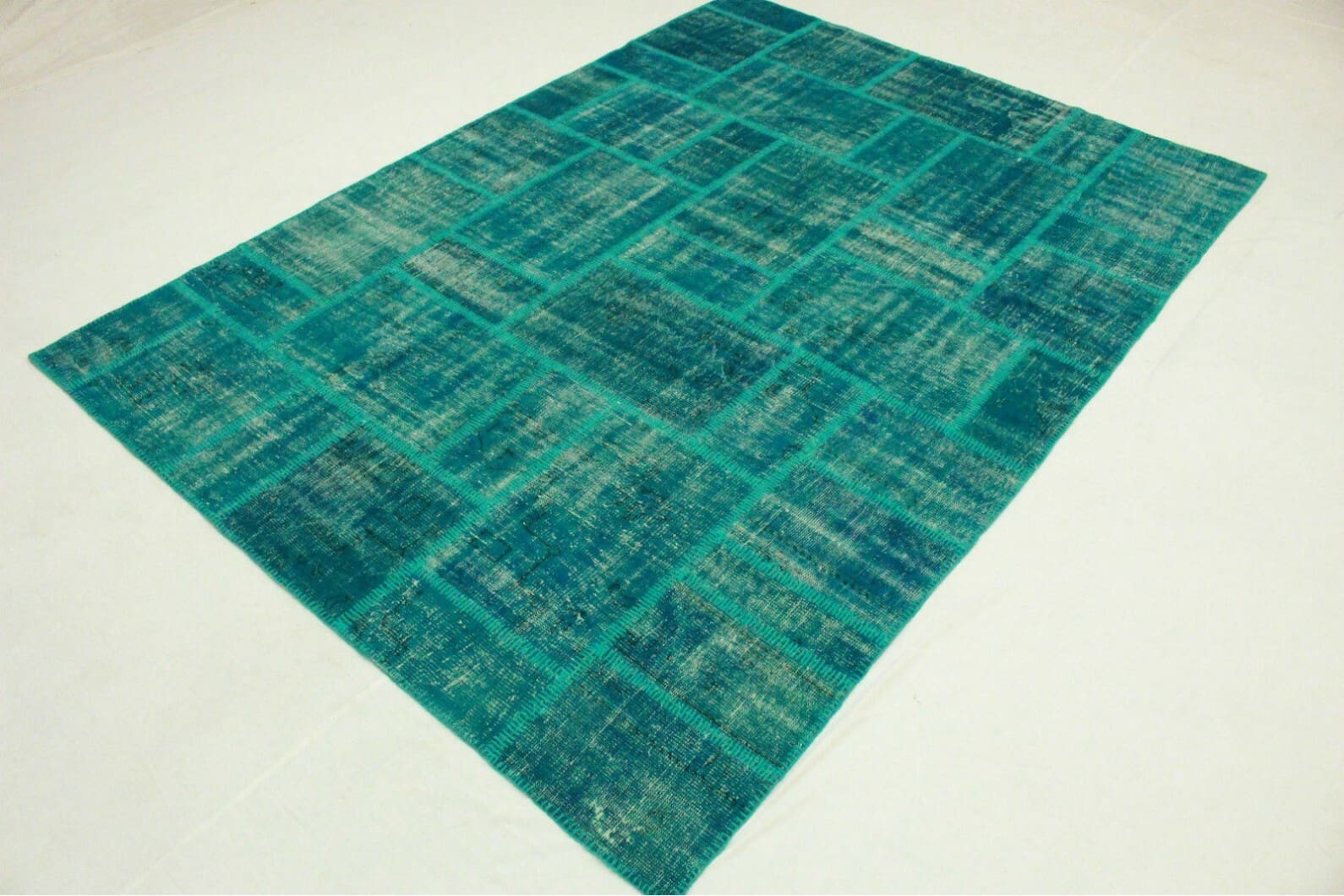 Patchwork Teppich Türkis | Größe: 303×215 cm | Material: Handgesponnene Wolle und Baumwolle | Zustand: Neu mit Etikett | Stil: Modern | Herkunft: Orient | Geeignet für Fußbodenheizung | Ideal für Wohnzimmer, Schlafzimmer, Esszimmer und Arbeitszimmer | Vintage-Optik | Handgeknüpft