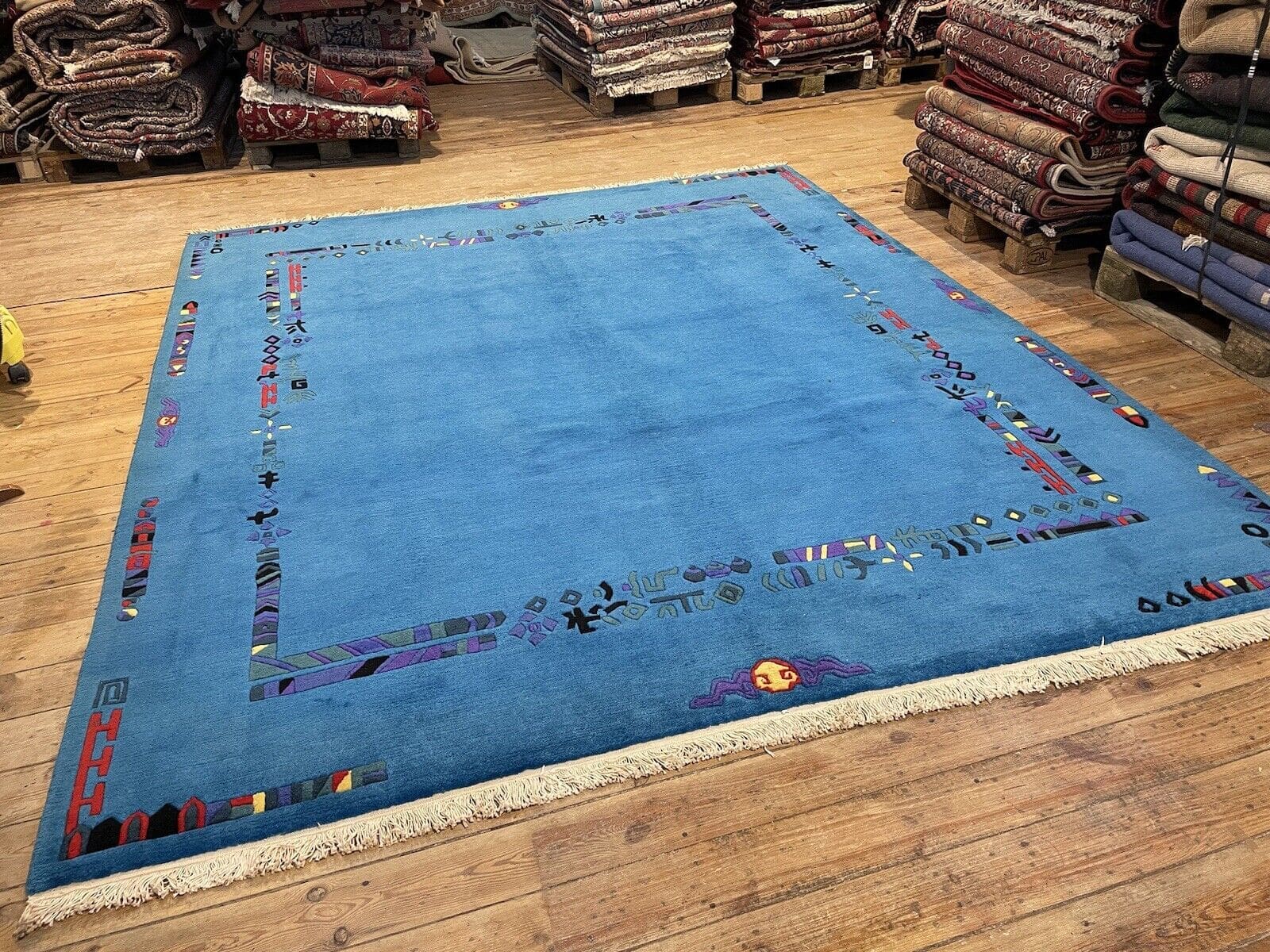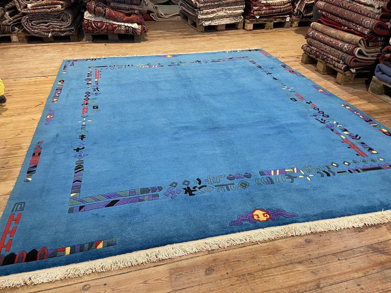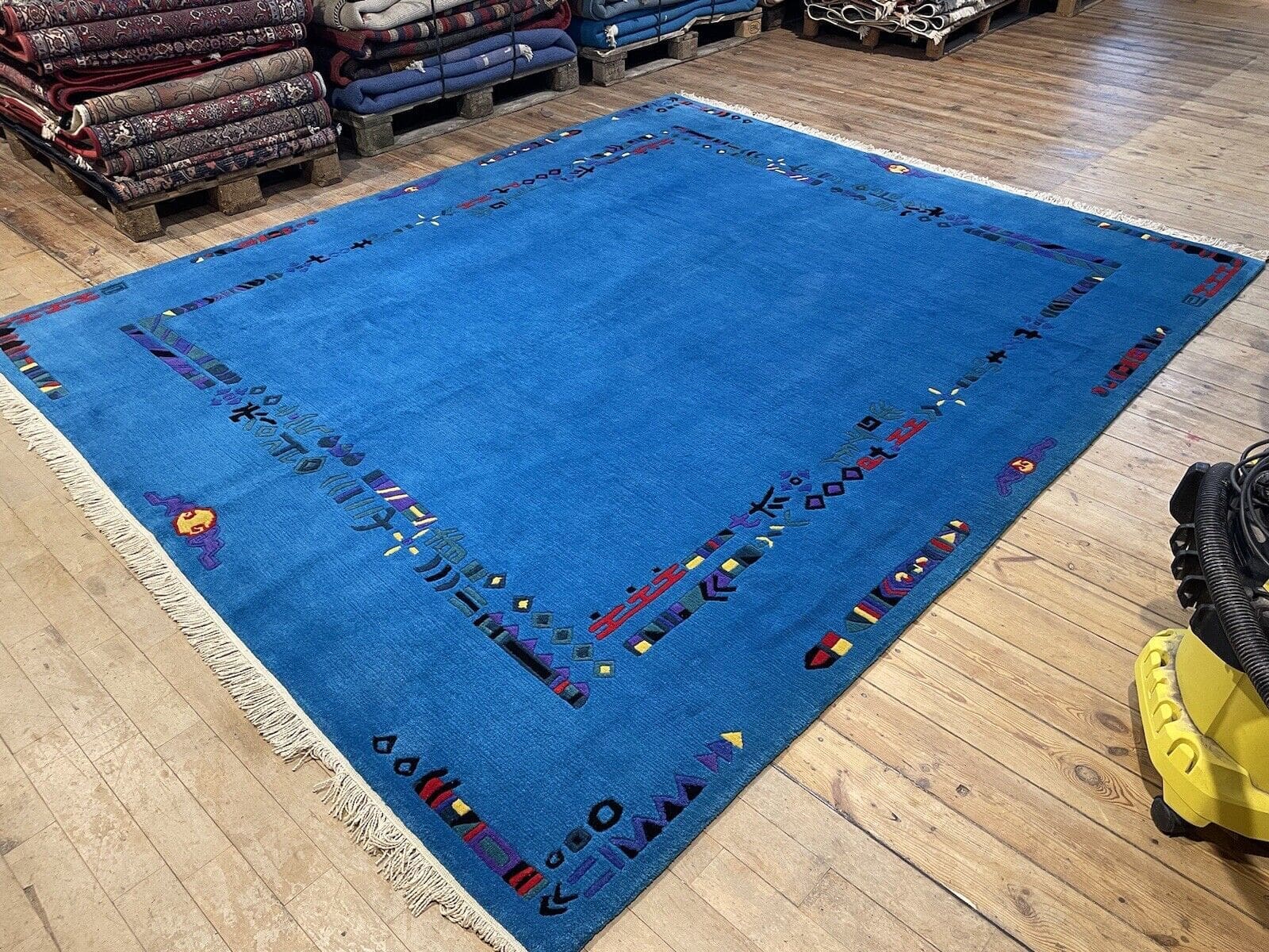 Türkisfarbener Perserteppich 305/245 cm – 20mm Hochflor, Allergikerfreundlich, Rutschsicher, Pflegeleicht, Handgeknüpft