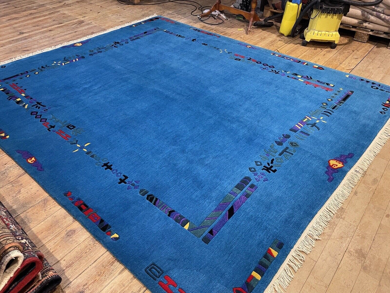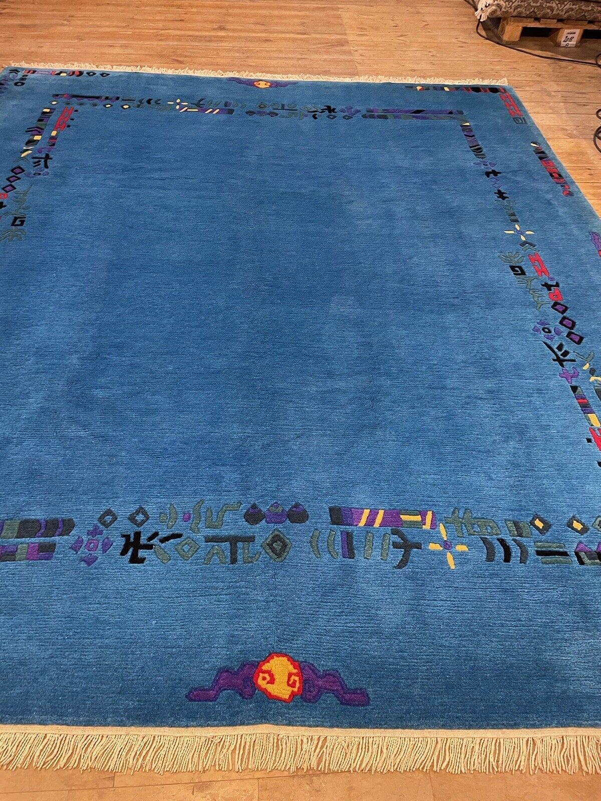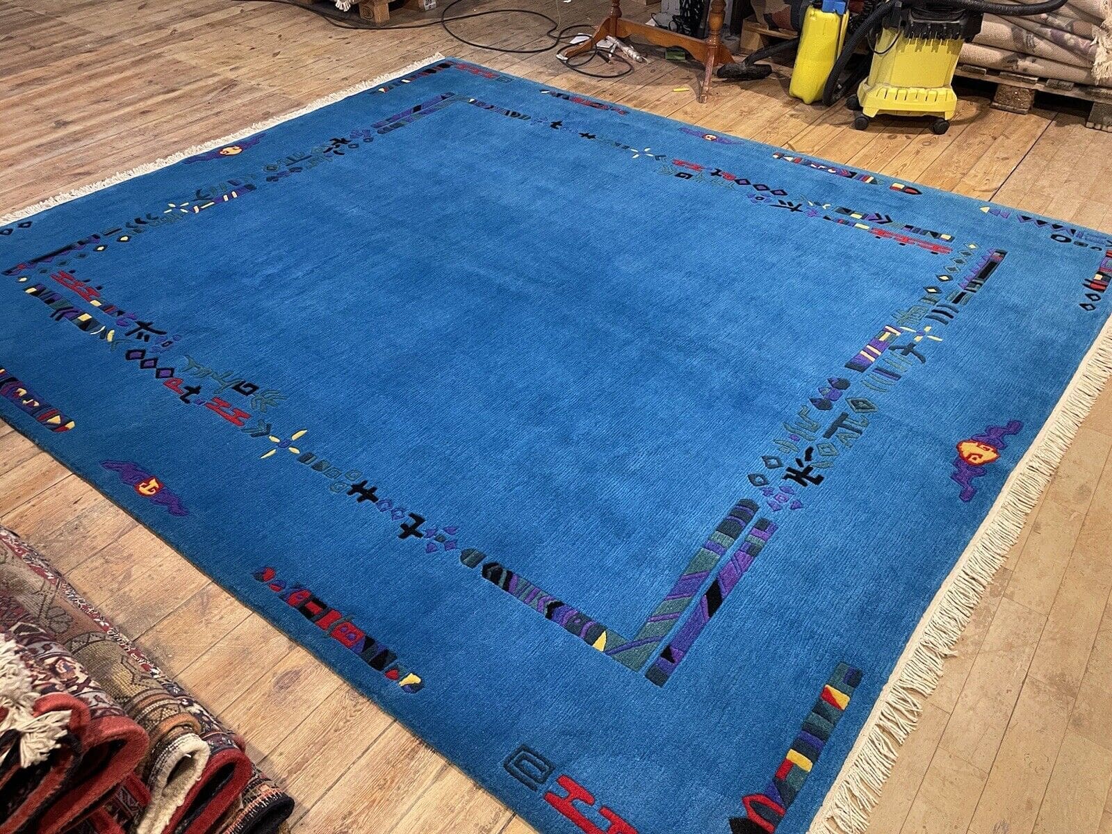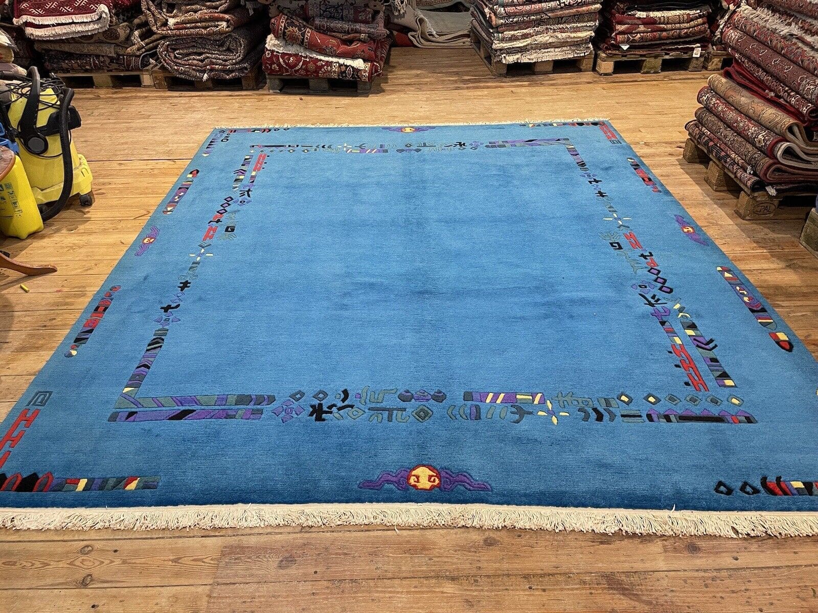 Türkisfarbener Perserteppich 305/245 cm – 20mm Hochflor, Allergikerfreundlich, Rutschsicher, Pflegeleicht, Handgeknüpft