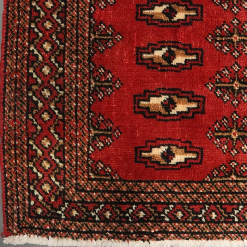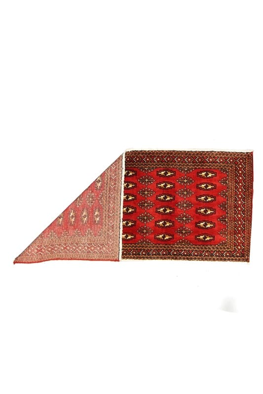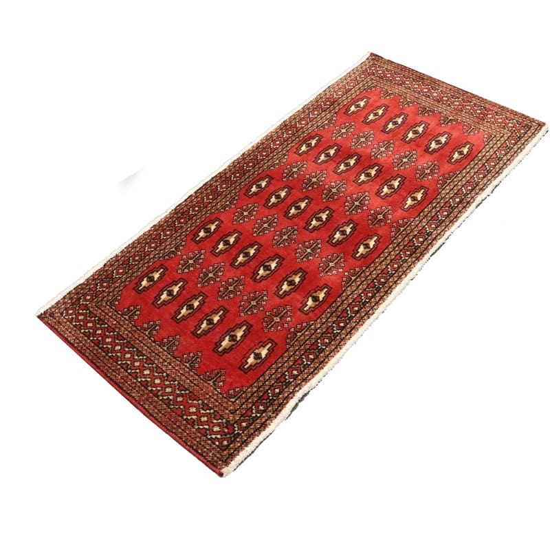 Handgefertigter Turkaman-Teppich | Knotendichte: 160.000-200.000 Knoten/m² | Material: 100% Naturwolle | Größe: 134×61 cm | Farbe: Rot/Orange | Herkunft: Turkaman-Region, Persien | Zustand: Neuzeitlich (0-20 Jahre) | Verarbeitung: Handgeknüpft | Gewicht: ca. 2 kg