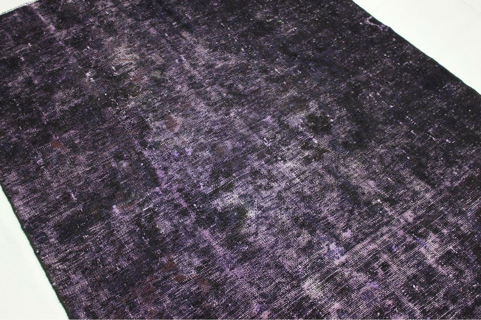 Vintage Teppich in Lila Schwarz | Größe: 190×130 cm | Knotendichte: Handgeknüpft | Material: Handgesponnene Wolle | Zustand: Neu mit Etikett | Herkunft: Orient | Stil: Modern | Besonders: Für Fußbodenheizung geeignet | Einzigartiges überfärbtes Muster mit antikem Charakter