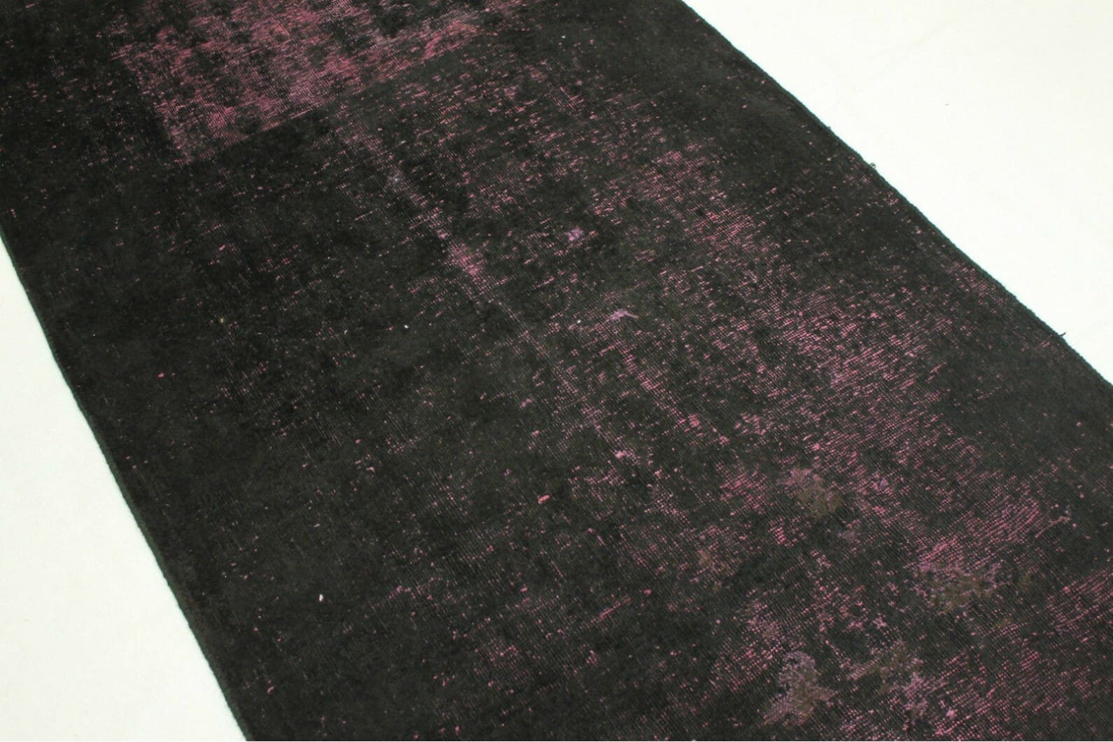 Handgeknüpfter Vintage-Teppich | Größe: 202×103 cm | Knotendichte: Hoch | Material: Handgesponnene Wolle | Farbe: Schwarz und Pink | Stil: Modern | Herkunft: Orient | Zustand: Neu mit Etikett | Besonderheiten: Für Fußbodenheizung geeignet | Alter: 20 – 50 Jahre