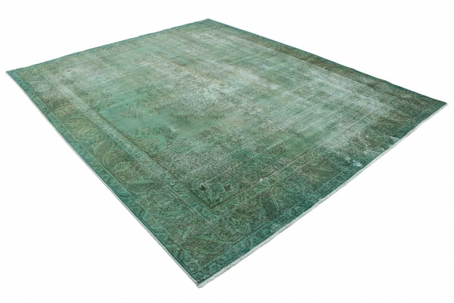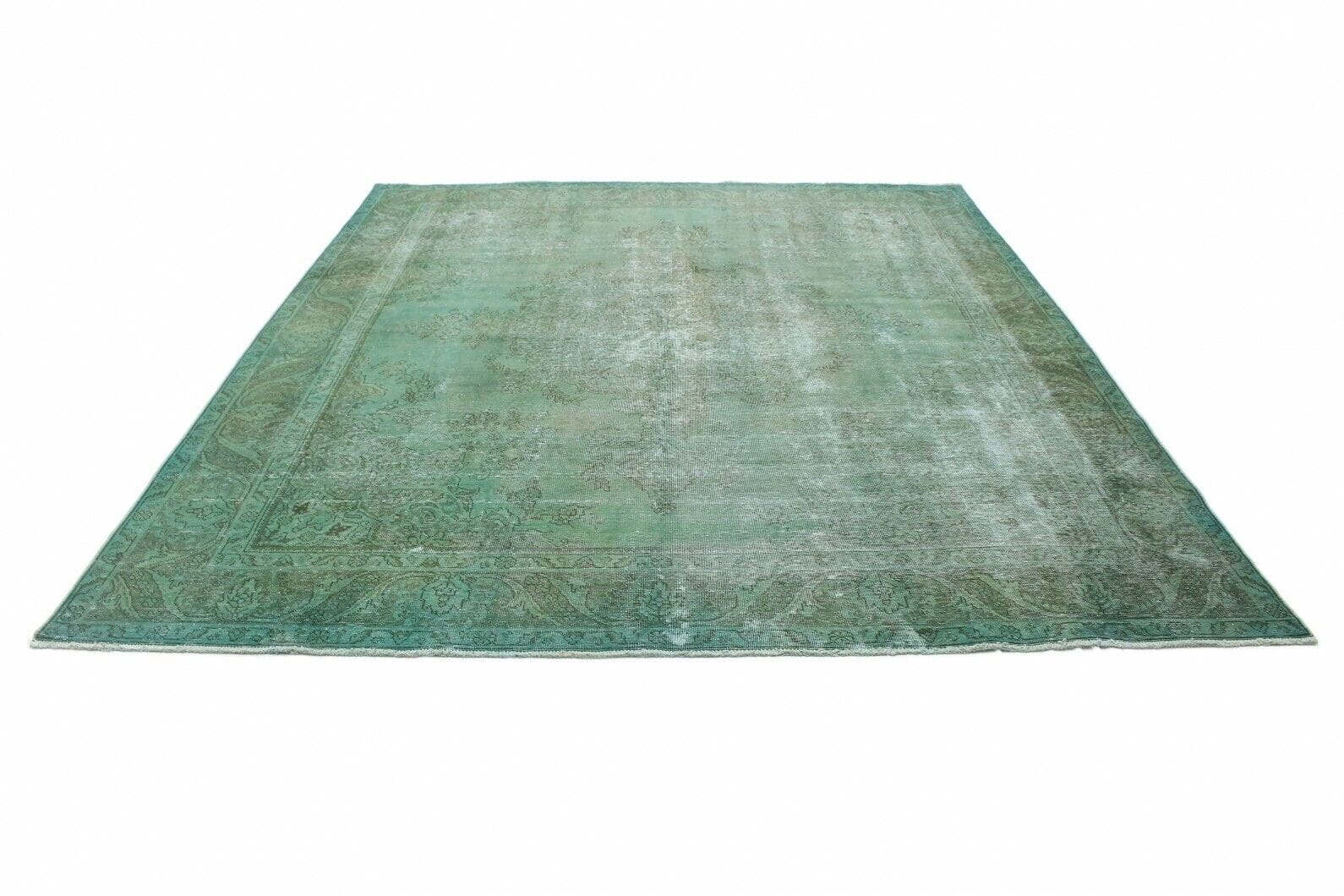Vintage Orientteppich 350x289cm Grün Grau, handgeknüpft