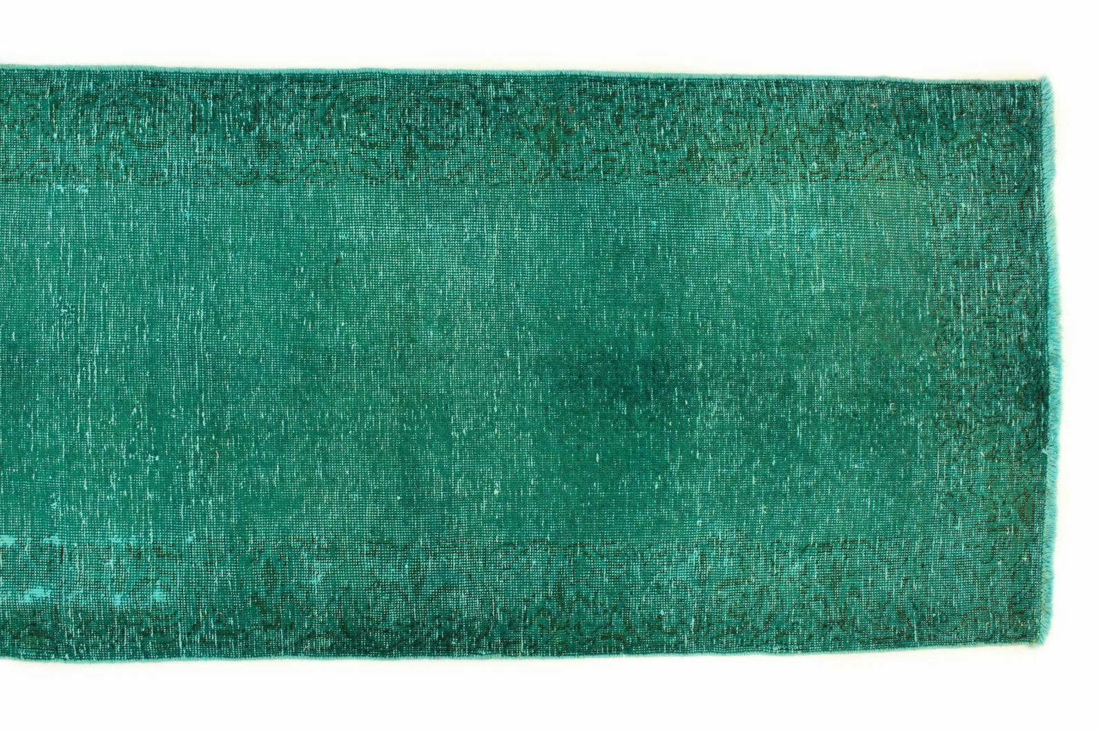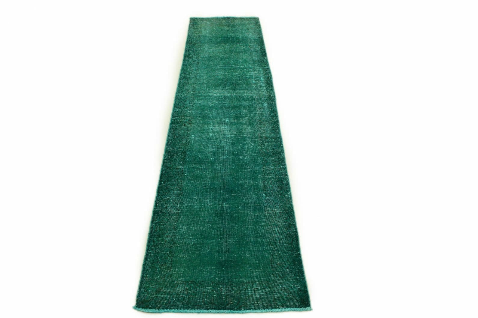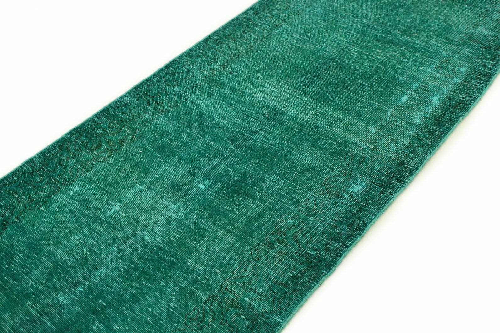 Vintage Orientteppich 350x79cm Türkis Grün, handgeknüpft