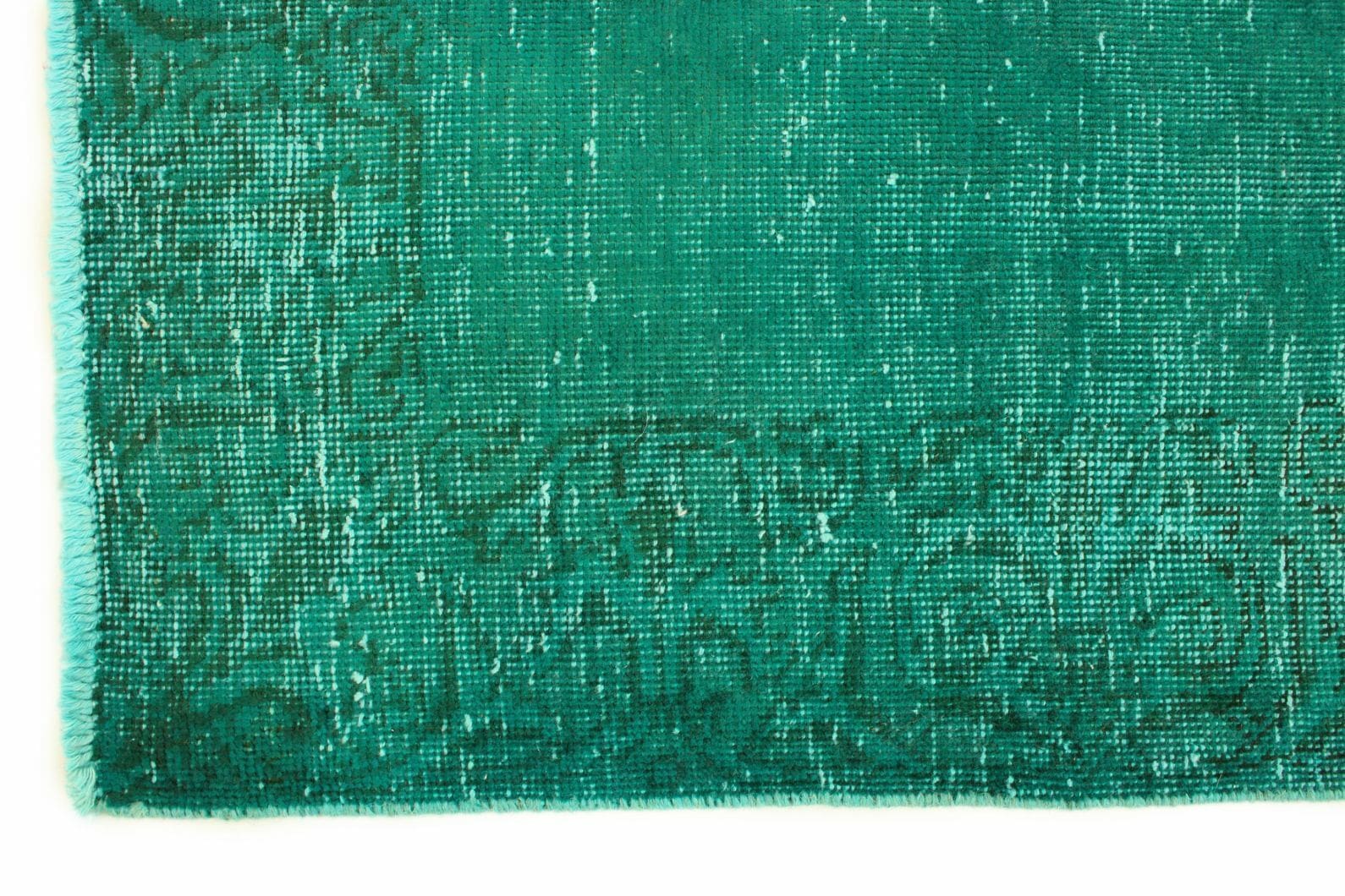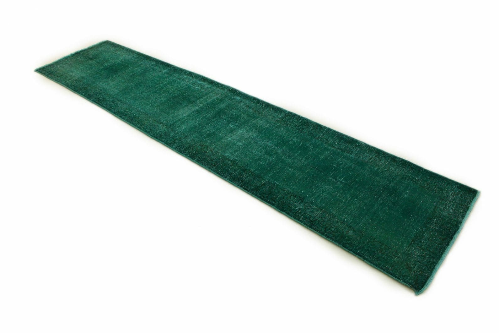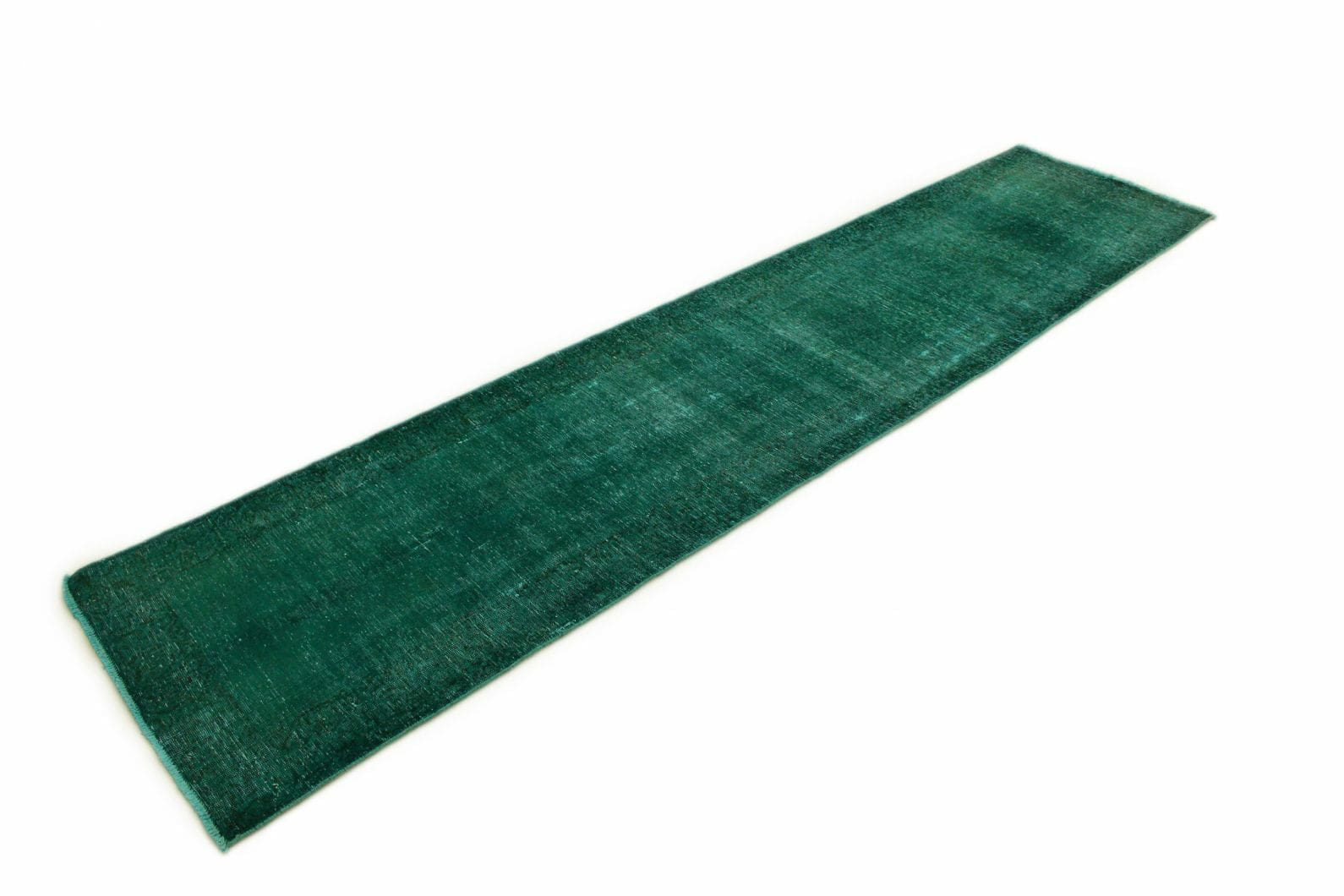 Vintage Orientteppich 350x79cm Türkis Grün, handgeknüpft