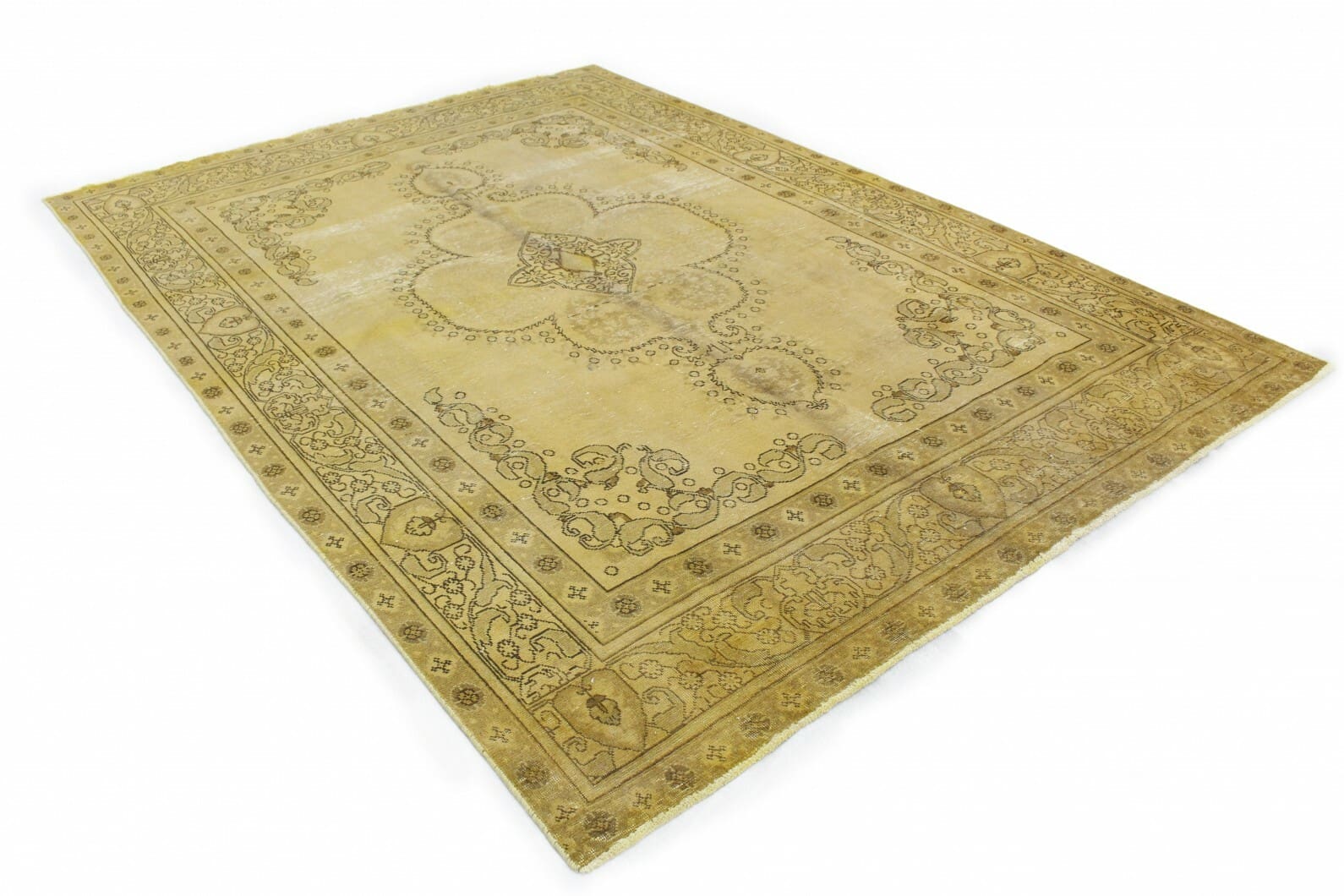 Vintage Teppich Gelb Gold | Größe: 352×241 cm | Material: Handgesponnene Wolle | Zustand: Neu mit Etikett | Herkunft: Orient | Stil: Modern | Besonderheiten: Für Fußbodenheizung geeignet | Knotendichte: Hoch | Design: Überfärbte Muster mit einzigartiger Optik