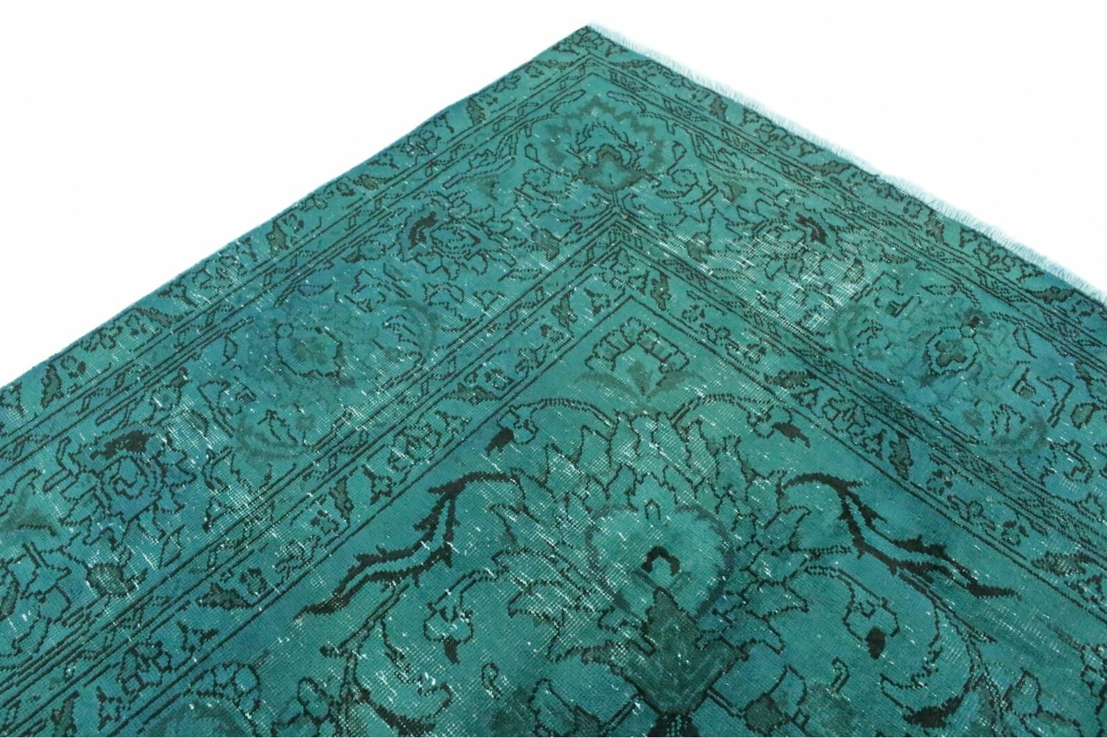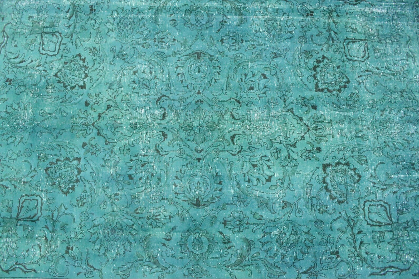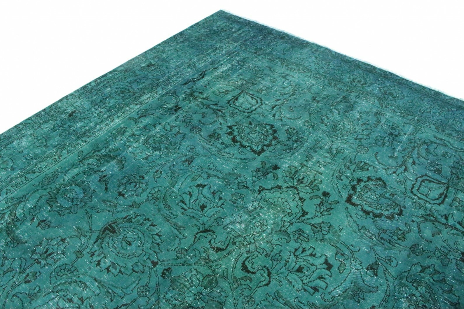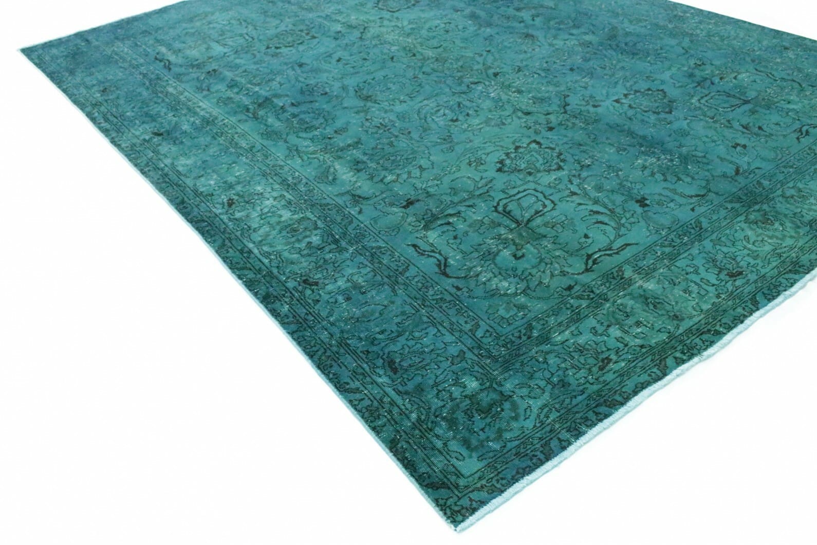 Vintage Teppich Türkis | Größe: 382×279 cm | Material: Handgesponnene Wolle | Knotendichte: Hoch | Herkunft: Orient | Zustand: Neu mit Etikett | Stil: Modern | Besonderheiten: Für Fußbodenheizung geeignet | Einzigartiges überfärbtes Design mit antikem Charakter